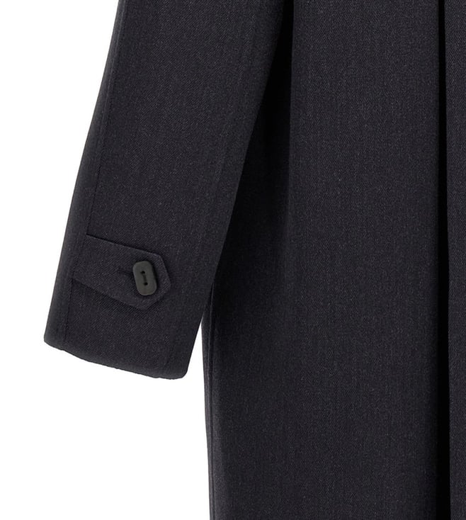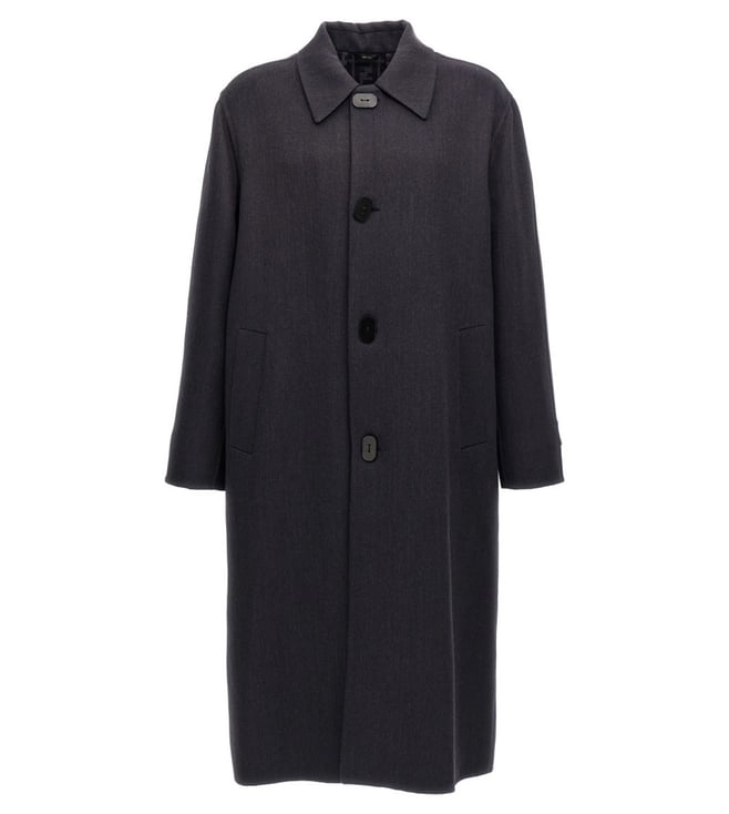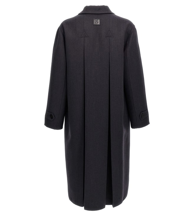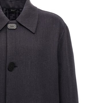 Upgrade your outerwear collection with the FENDI Blue coat. Crafted with high-quality materials, this trench coat features single-breasted double wool coat with all-over logo print inside, button closure, pockets, long sleeves with frogs on the wrist, wide volume back with pleats. true to size fit. for unmatched warmth and style. The sleek design offers a flattering silhouette, while the versatile color and fabric ensure it complements any outfit. Perfect for both casual outings and formal events.
