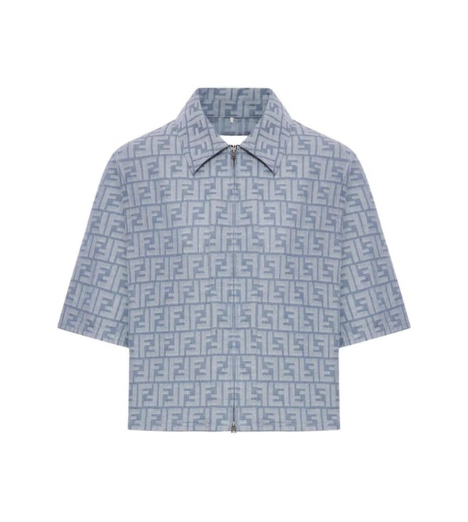 The Fendi Blue Printed Jacket is a masterpiece of modern fashion, blending luxury with bold artistry. Its vibrant azure hue serves as a canvas for intricate, abstract patterns that dance across the fabric, evoking a sense of dynamic movement. Crafted from premium materials, the jacket offers a tailored fit that exudes sophistication. The sleek silhouette is complemented by subtle metallic accents, adding a touch of futuristic elegance. Perfect for those who dare to stand out, this jacket is a statement of style and innovation.