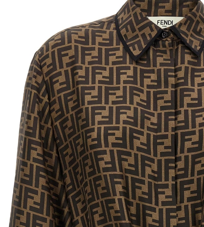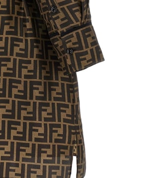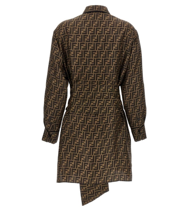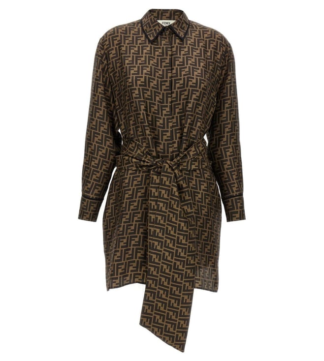 Fendi Brown Ff Motif Belted Shirt Graphic Dress