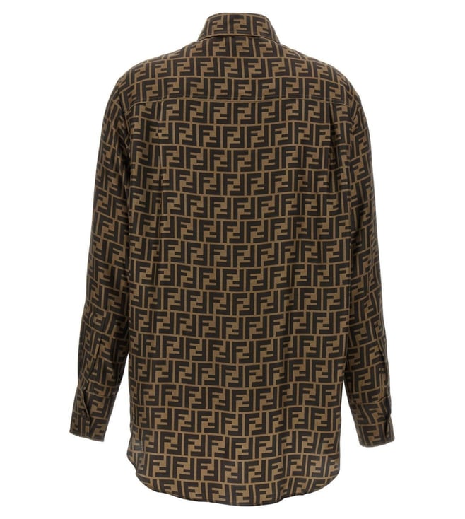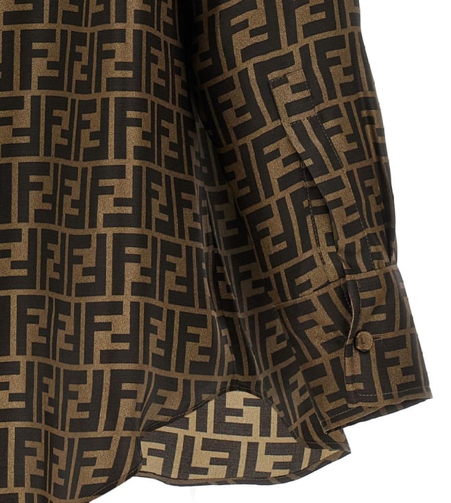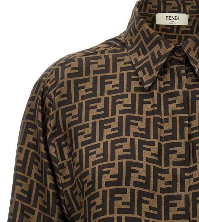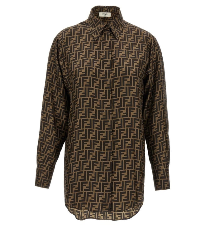 Elevate your wardrobe with this exquisite brown casual shirt, adorned in a captivating graphic pattern. Crafted from 100% silk, it offers a luxurious feel and a graceful drape. The long sleeves and classic shirt collar add a touch of sophistication, making it perfect for both relaxed and refined settings. The concealed closure ensures a seamless silhouette, while the rich brown hue complements any ensemble. Designed for the modern woman, this shirt effortlessly blends comfort with style, making it a versatile staple.
