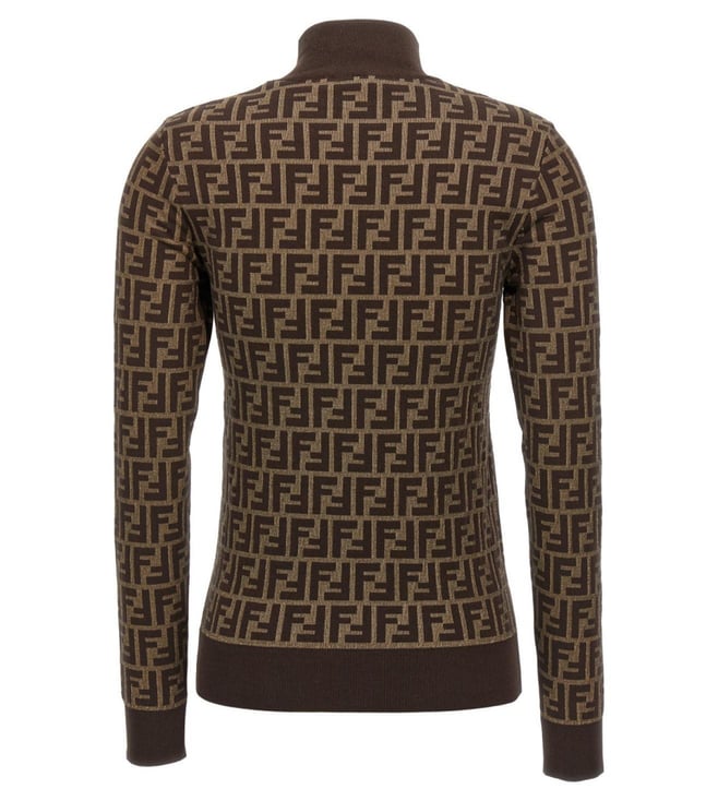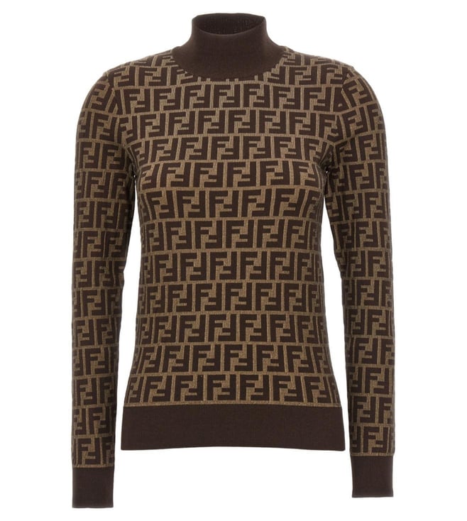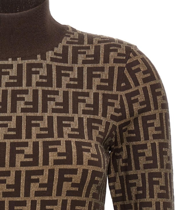 The Fendi Brown Turtle Neck Sweater is a luxurious blend of style and comfort, crafted for the discerning woman. Its rich brown hue exudes warmth, while the intricate pattern adds a touch of sophistication. Made from 100% cotton, this sweater promises a soft, breathable experience. The elegant turtle neck design offers both coziness and chic appeal, perfect for any occasion. Its seamless closure ensures a sleek silhouette, making it a versatile addition to any wardrobe.