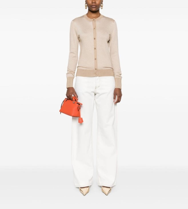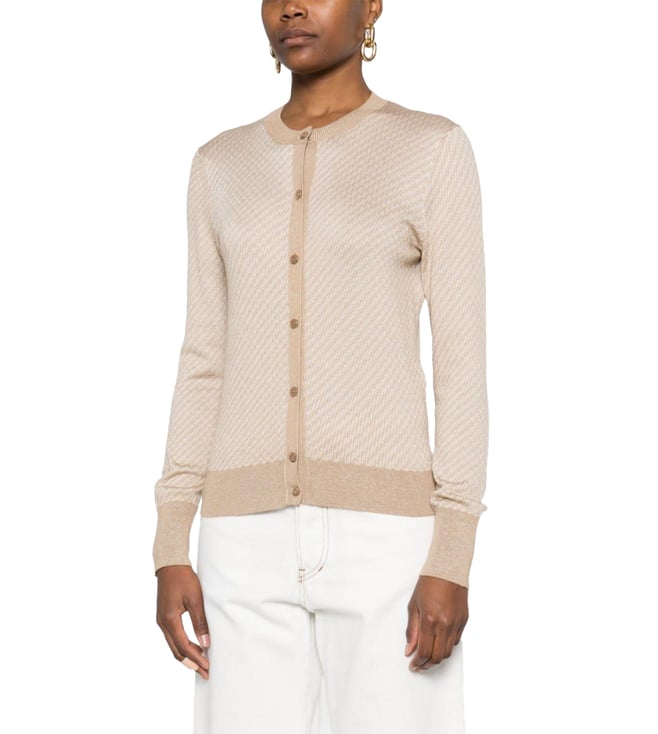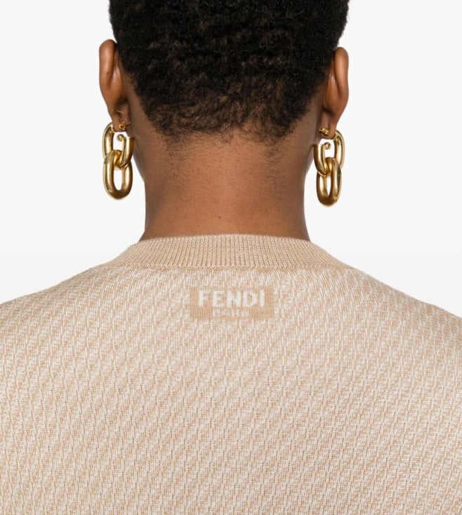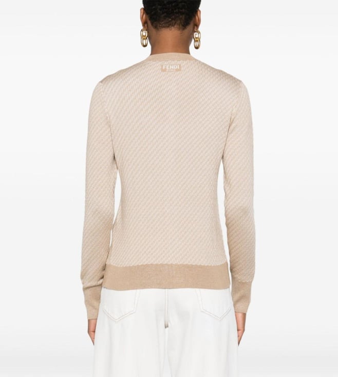 Fendi Light Brown Ff-Jacquard Woven Design Cardigan