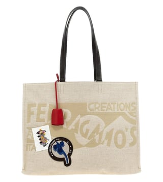 Expand the collection of your accessories in a trendy way with this bag from Ferragamo. Tote bag l jacquard fabric shopping bag with front and back patch, fixed leather hand handle, fixed leather shoulder handle, leather and metal charm keyring. Products purchased from Darveys are supported exclusively by the warranty/exchange policies of Darveys and its partner boutiques. Brand owners and their channel partners are not responsible for exchange/warranty services for items purchased through Darveys.
