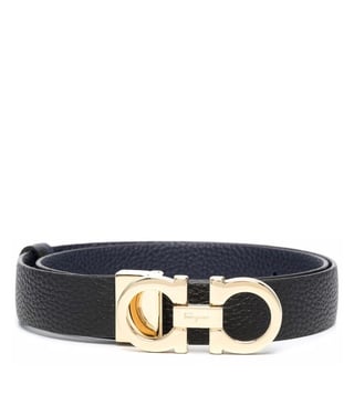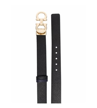 Elevate your accessory game with the Ferragamo Reversible Belt in Textured black. Crafted from luxurious black grained leather, this belt features a sleek design with gold-tone hardware and an adjustable engraved logo buckle. Versatile and stylish, it can be worn on both sides for added convenience. Perfect for women who appreciate high-quality craftsmanship and timeless elegance, this belt is a must-have addition to any wardrobe. With a minimum length of 73.0 centimetres and a total length of 79.0 centimetres, this belt is designed to fit comfortably and effortlessly enhance any outfit.