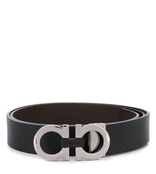 Elevate your casual look with the Ferragamo casual Textured black Leather Belt. Featuring a sleek gancini buckle and silver-tone hardware, this belt adds a touch of sophistication to any outfit. With a total length of 110 centimetres and a width of 3.5 centimetres, this belt is perfect for men looking to add a stylish accessory to their wardrobe. The punched holes and curved tips add a unique flair to this timeless piece. Upgrade your style with this must-have accessory from Salvatore Ferragamo.