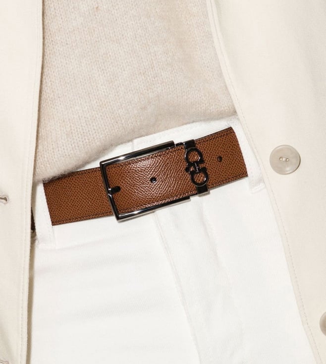 Elevate your casual style with the Ferragamo casual Textured brown belt. Featuring a sleek buckle closure and adjustable sizing, this accessory offers both functionality and fashion-forward design. The logo detailing adds a touch of luxury to any outfit, making it a must-have for any modern man's wardrobe. Stay effortlessly stylish and comfortable with this versatile belt that effortlessly transitions from day to night, perfect for any occasion.