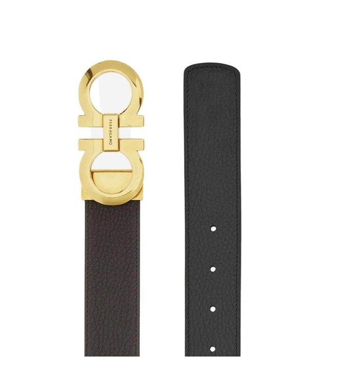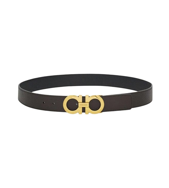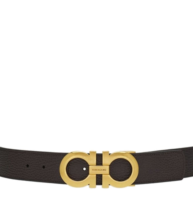 Ferragamo Dark Brown Gancini Buckle Belt: Belt Made Of Grained Leather Buckle With Double Gancini Reversible Dark Brown, Black Made In Italy Composition 100% Leather Products purchased from Darveys are supported exclusively by the warranty/exchange policies of Darveys and its partner boutiques. Brand owners and their channel partners are not responsible for exchange/warranty services for items purchased through Darveys.