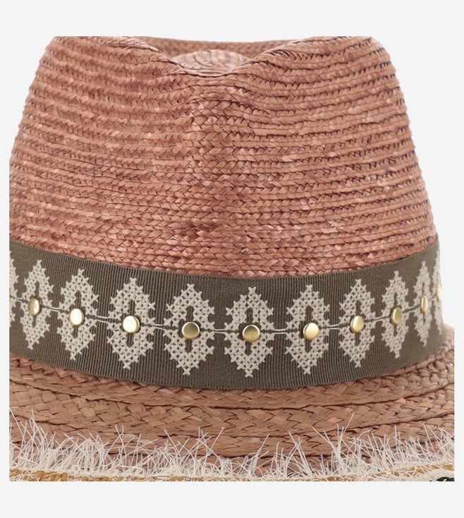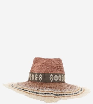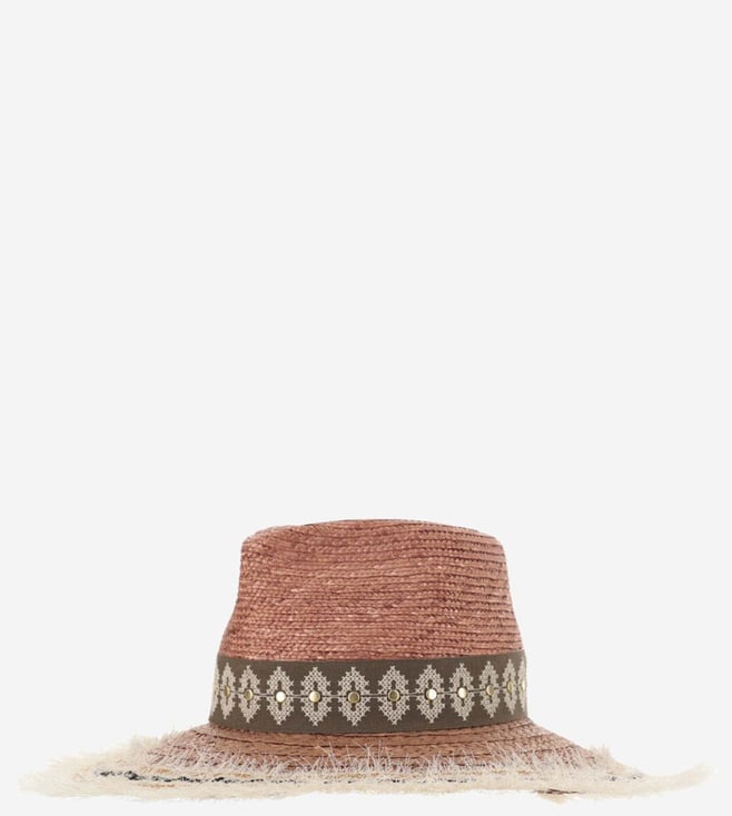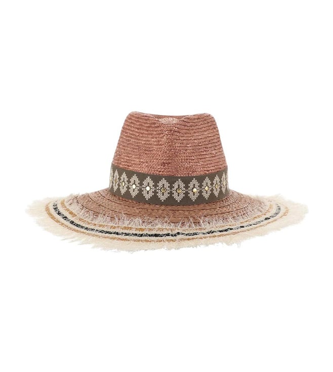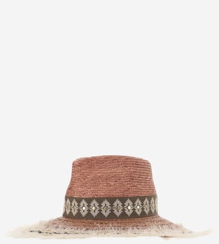 Hat made of straw and viscose blend headband with embroidered geometric motif wide brim with fringing natural made in italy composition: 50% straw, 50% viscose size 57 cm. Products purchased from Darveys are supported exclusively by the warranty/exchange policies of Darveys and its partner boutiques. Brand owners and their channel partners are not responsible for exchange/warranty services for items purchased through Darveys.