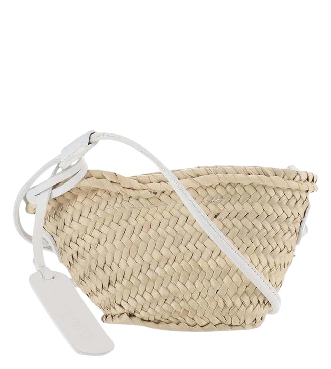 Beige Straw Satchel Bag