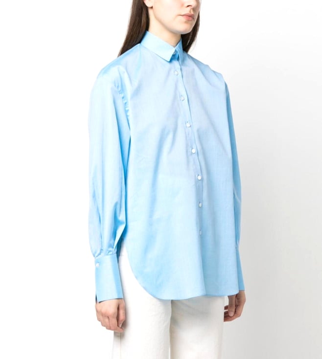 Sky Blue Cotton And Linen Blend Shirt