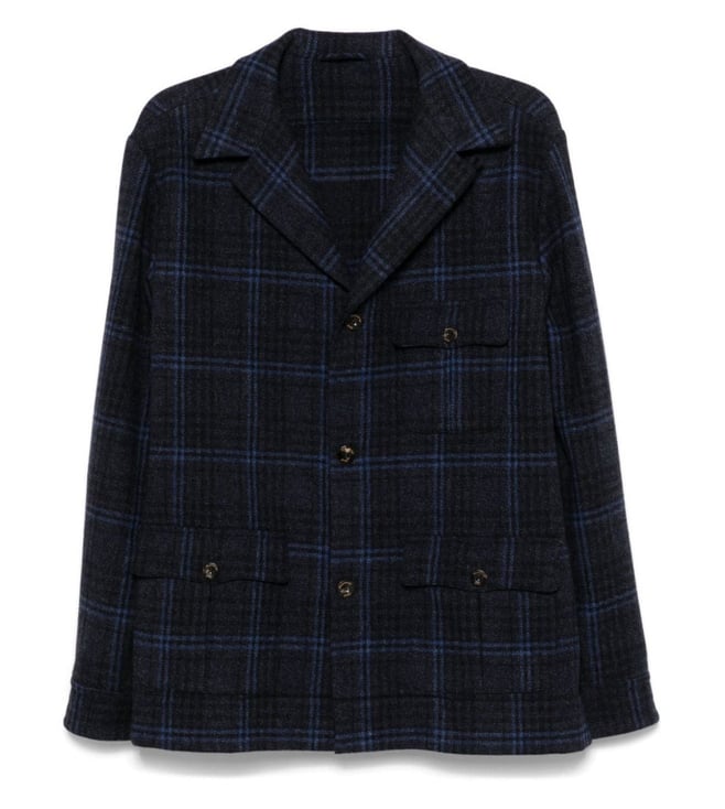 Navy Checked Single-Breasted Blazer