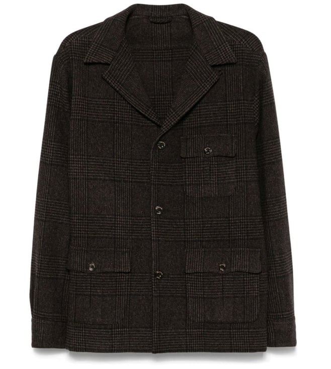 Dark Brown Checked Single-Breasted Blazer