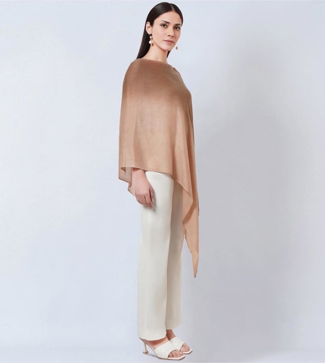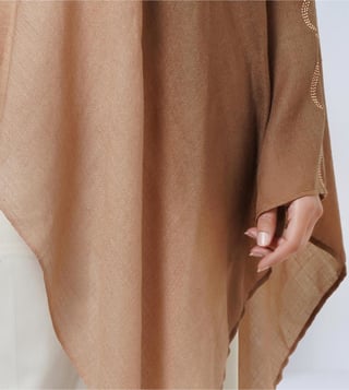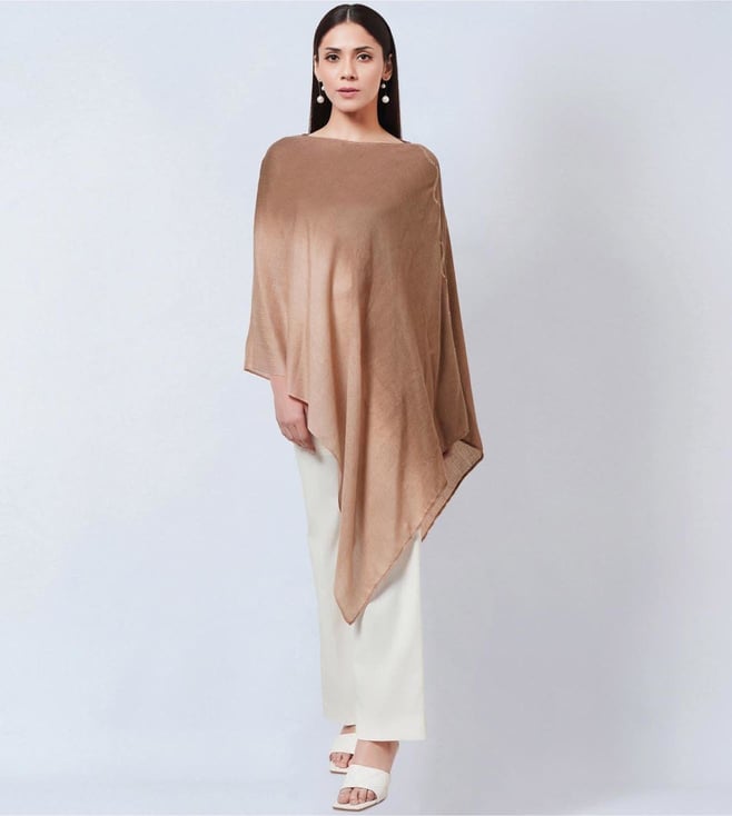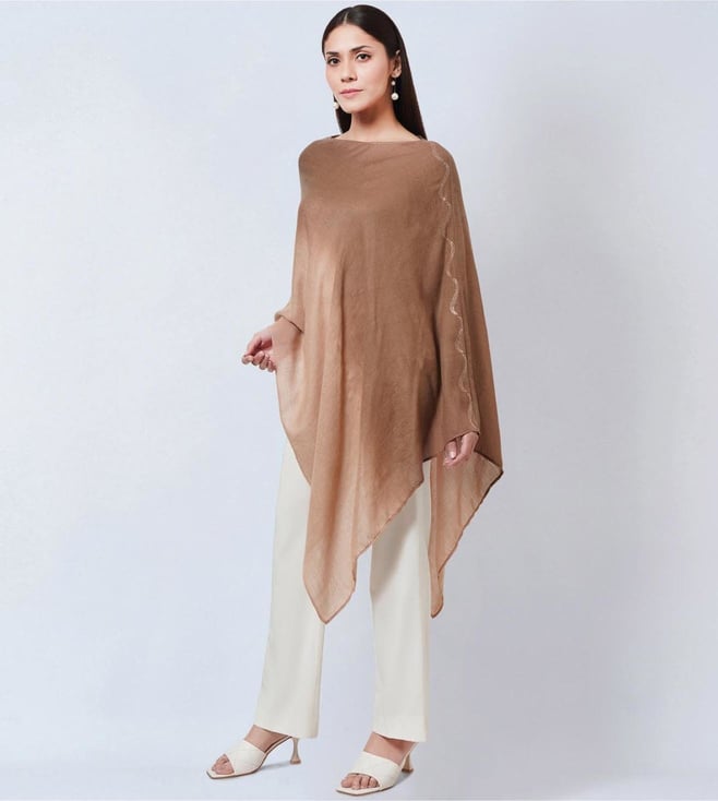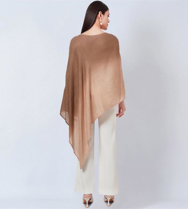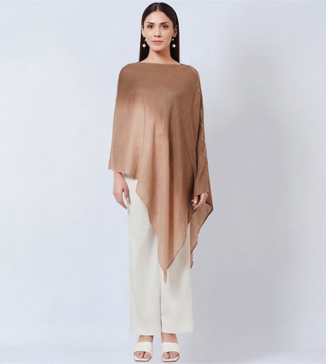 First Resort By Ramola Bachchan Brown Ombre Asymmetrical Embellished Cashmere Poncho