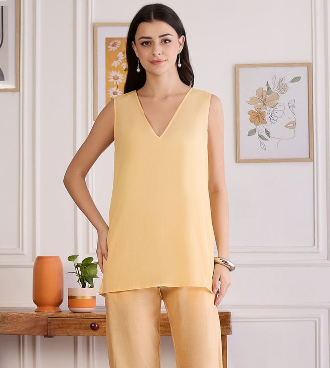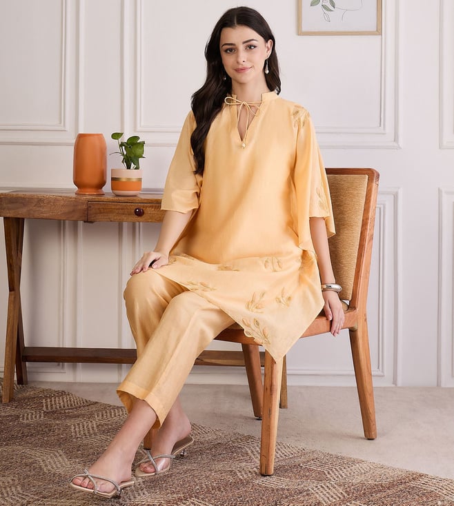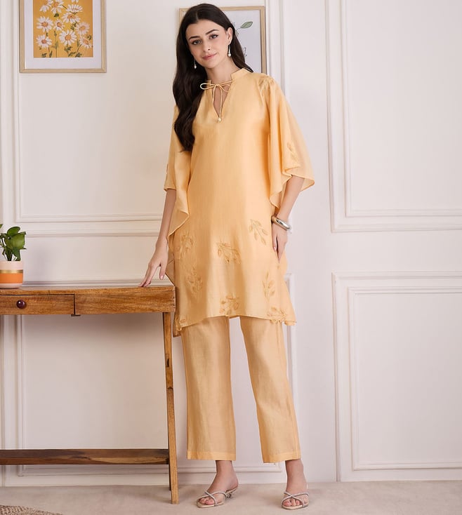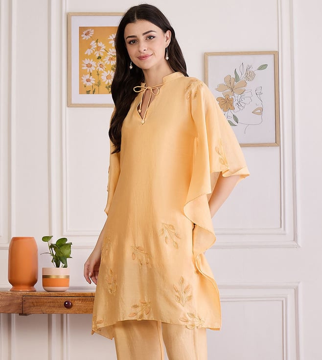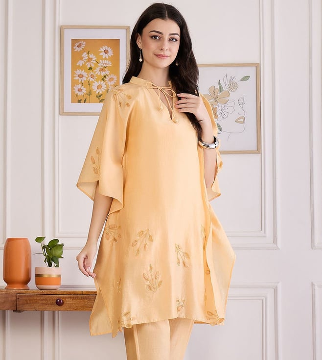 Butter Yellow Applique Kaftan Top