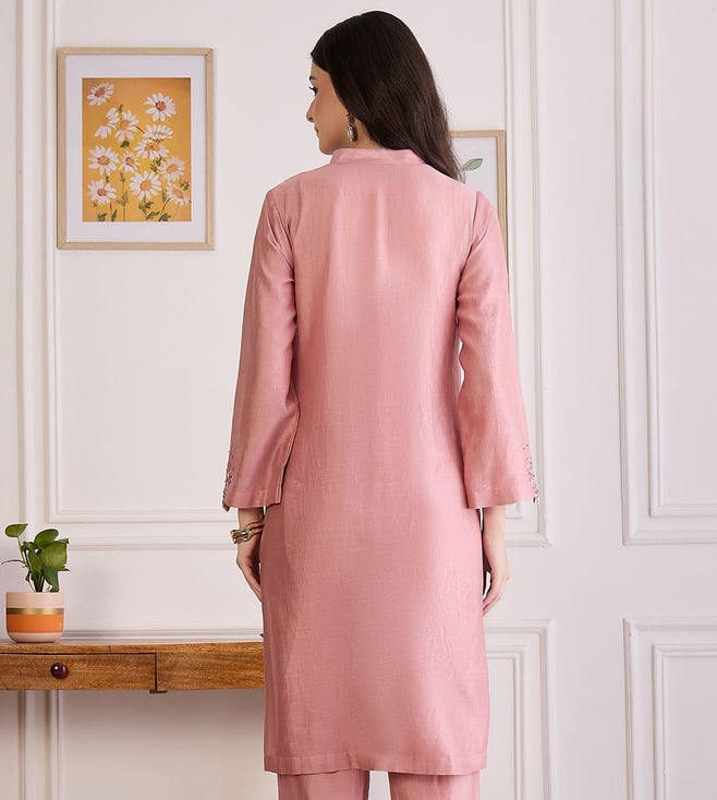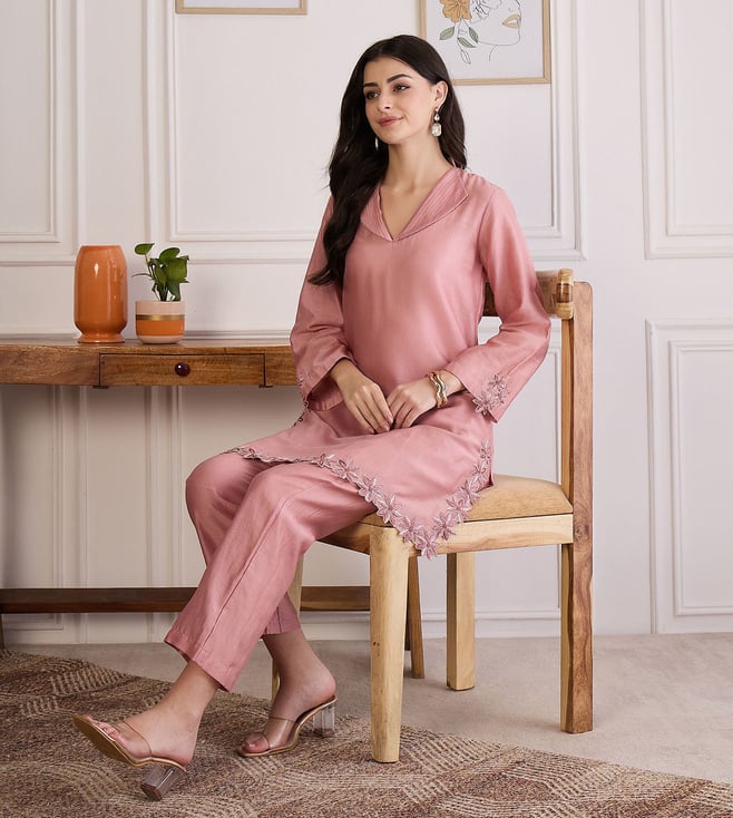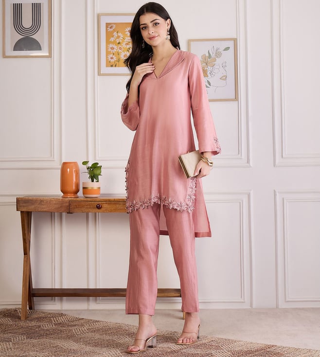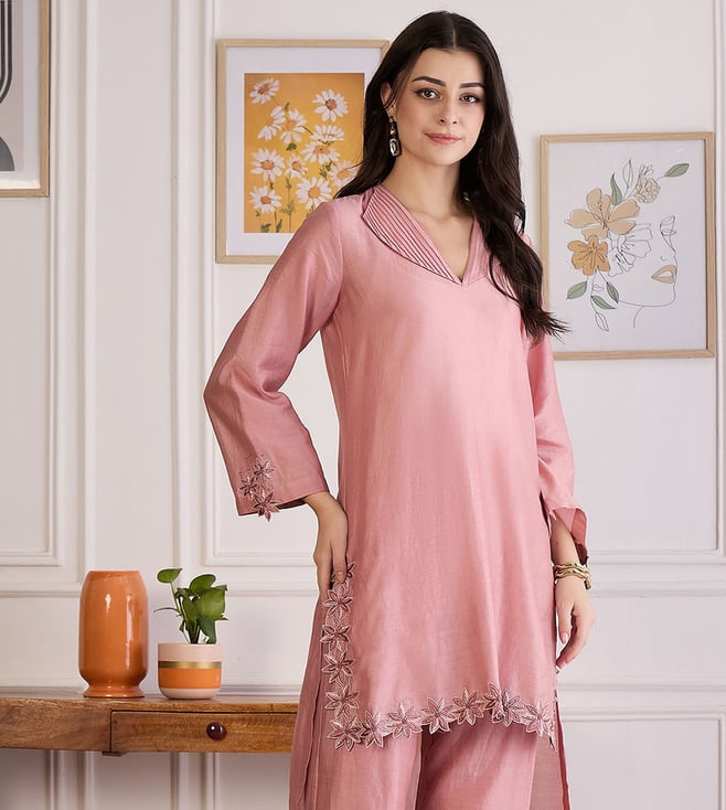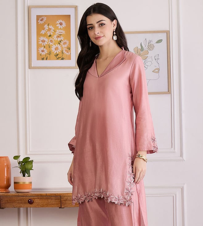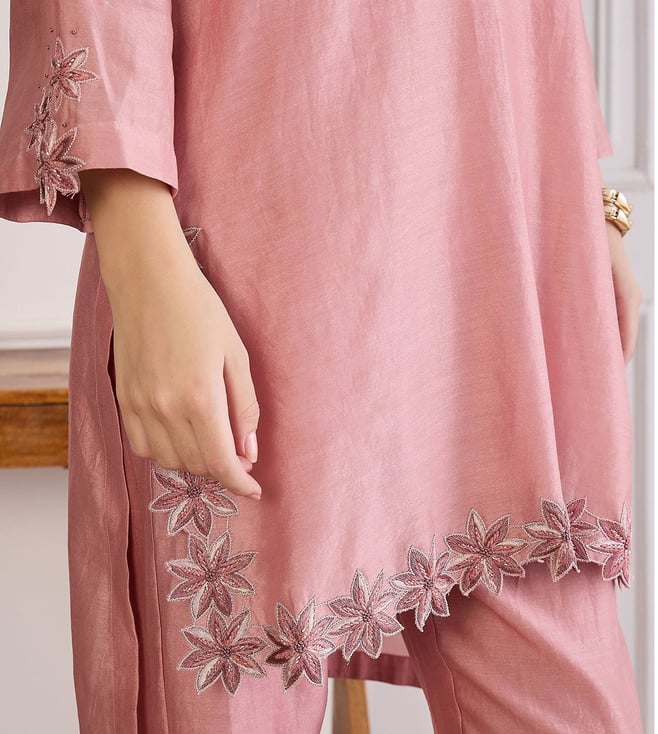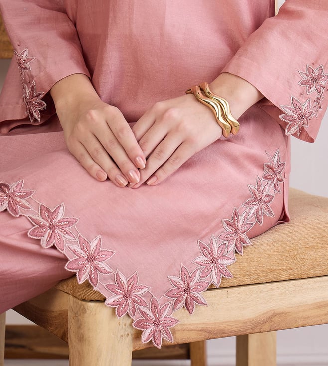 First Resort By Ramola Bachchan Carnation Pink Floral Cutwork Kurta