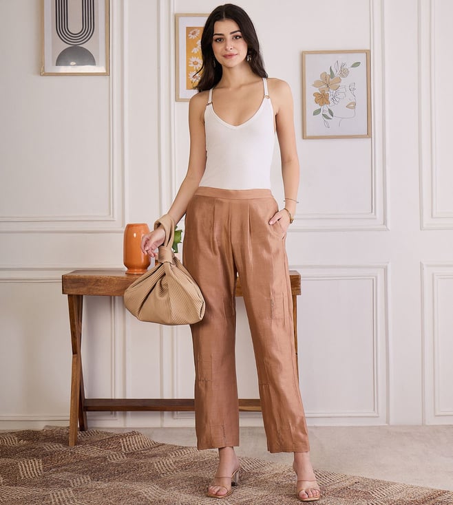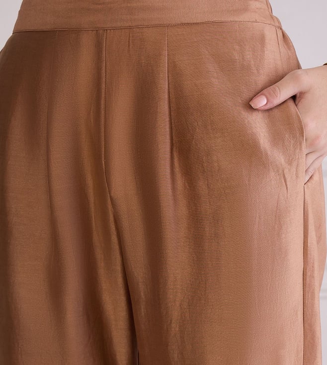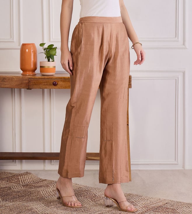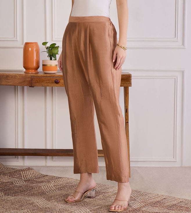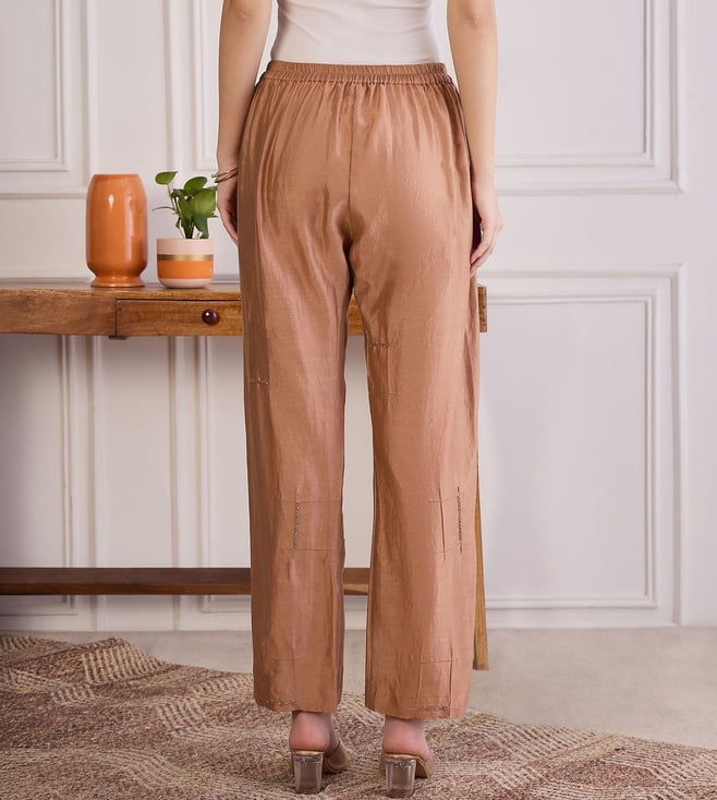 First Resort By Ramola Bachchan Copper Brown Hand Embroidered Straight Pants