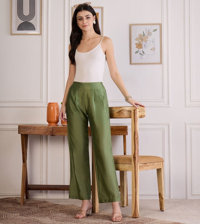 First Resort By Ramola Bachchan Green Chic Straight Pants