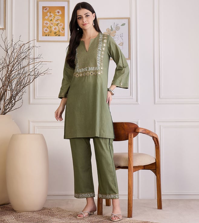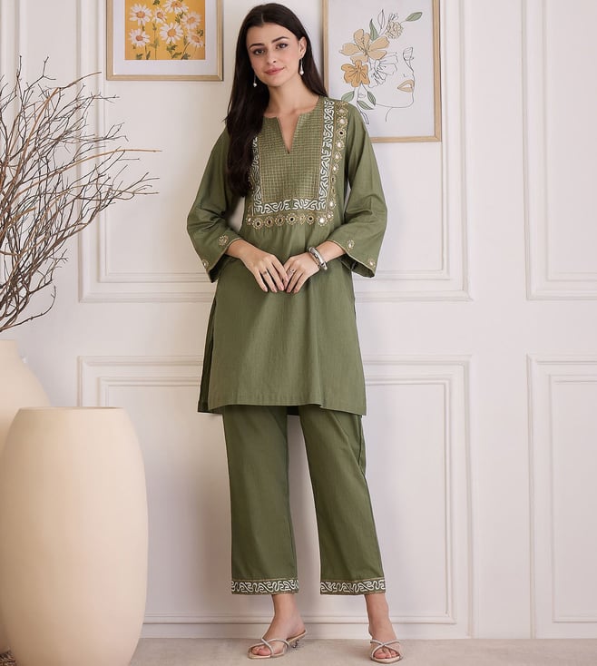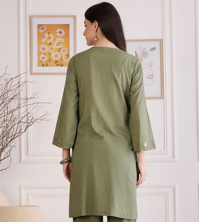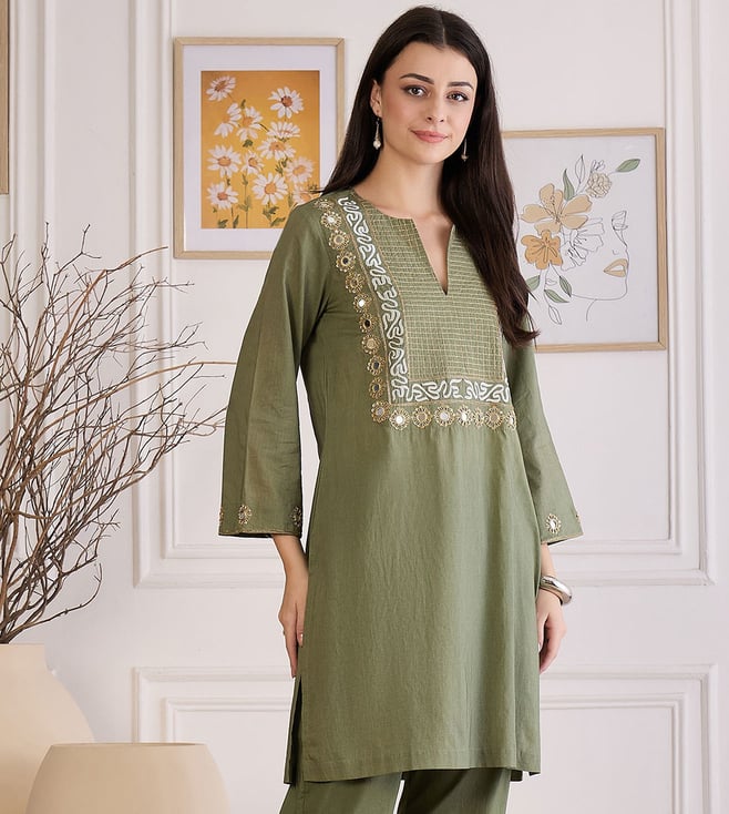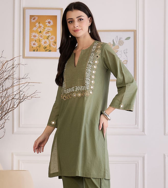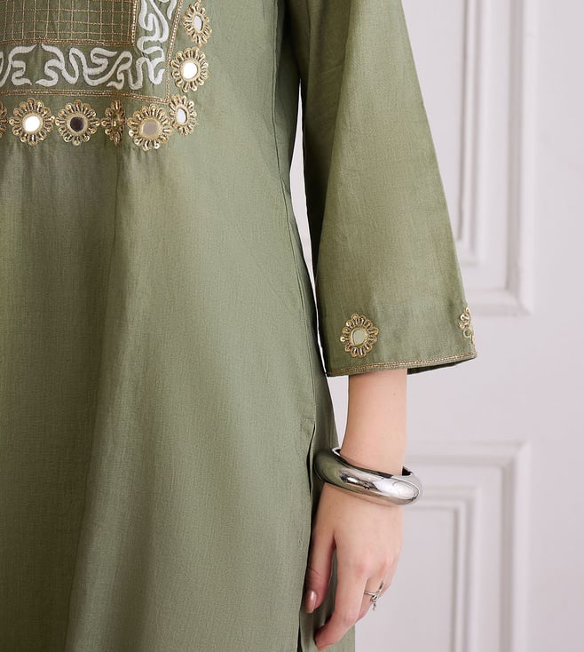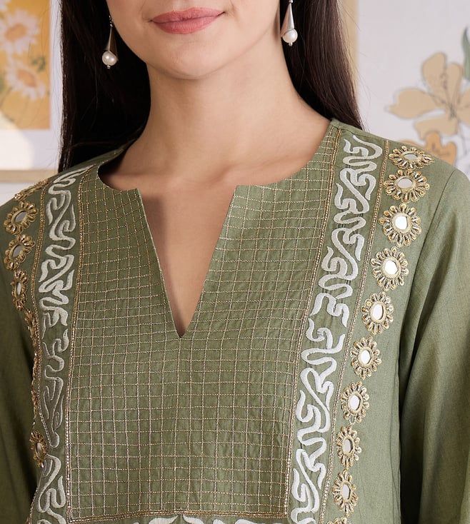 First Resort By Ramola Bachchan Green Yoke Embroidered Kurta