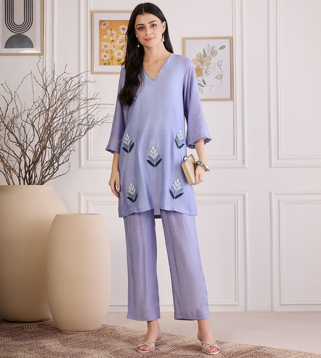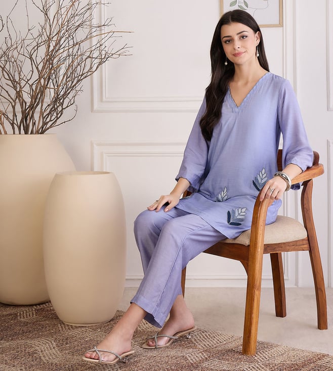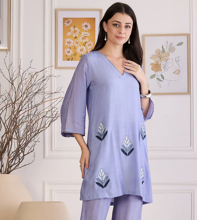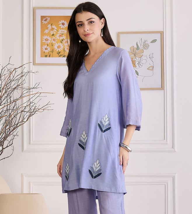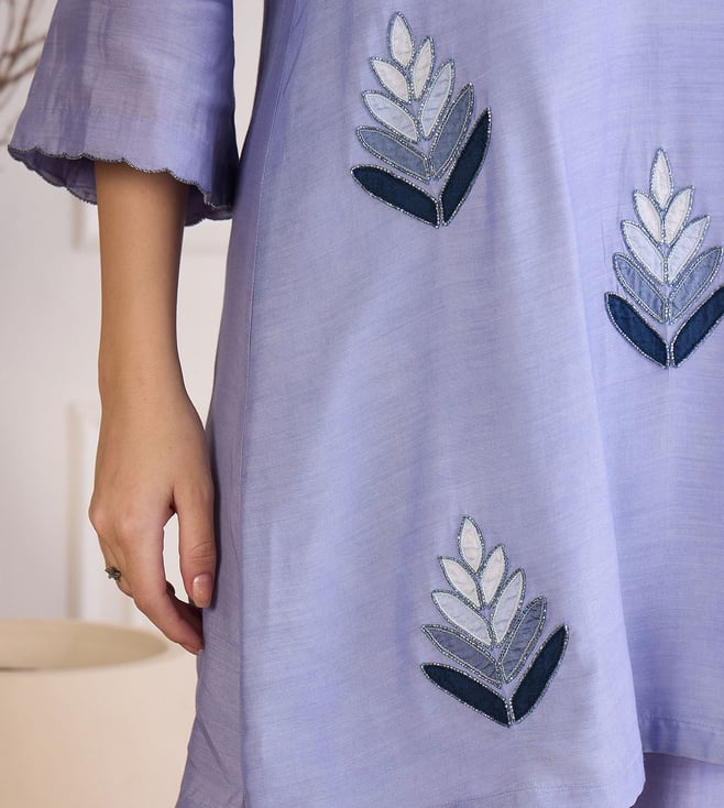 Bring an artisanal flair to your wardrobe with this applique kurta adorned with delicate bead detailing. Crafted in a fluid, lightweight fabric, it offers an airy feel and graceful movement. The mix of textured applique and subtle shimmer creates a visually rich design that's equal parts contemporary and timeless¿perfect for elevating your everyday style.