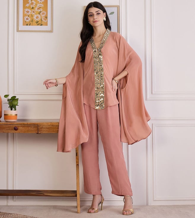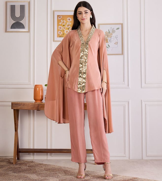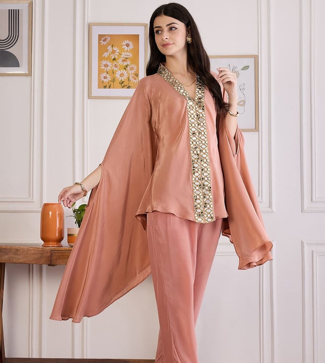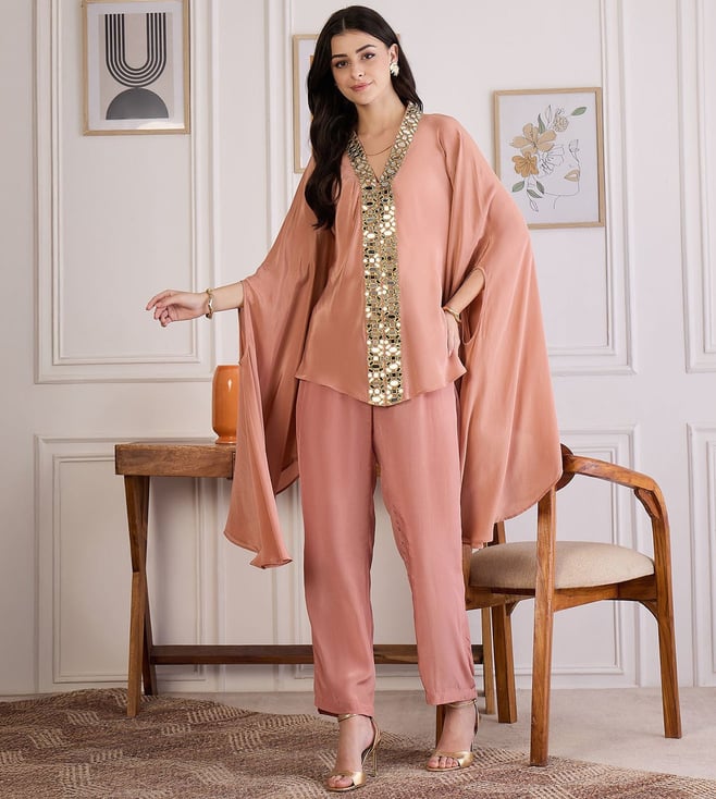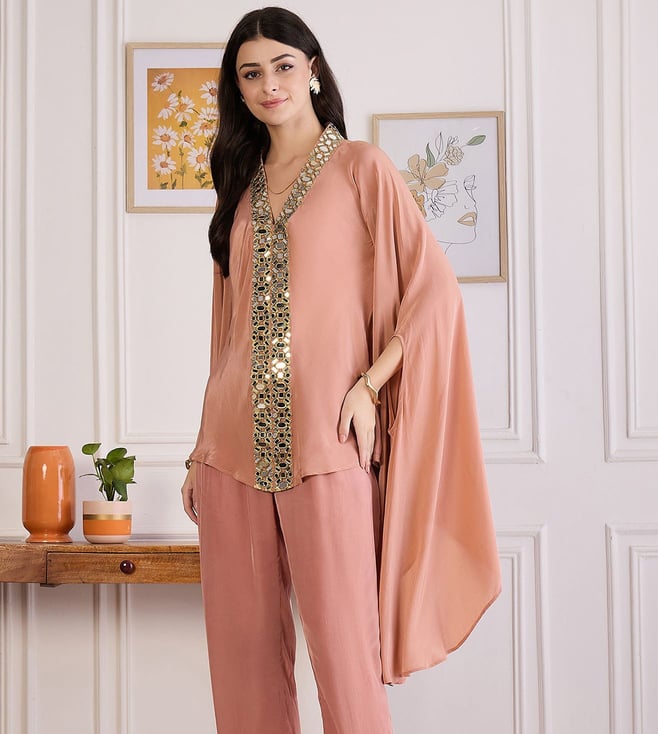 First Resort By Ramola Bachchan Light Rust Mirror Laced Kaftan Top