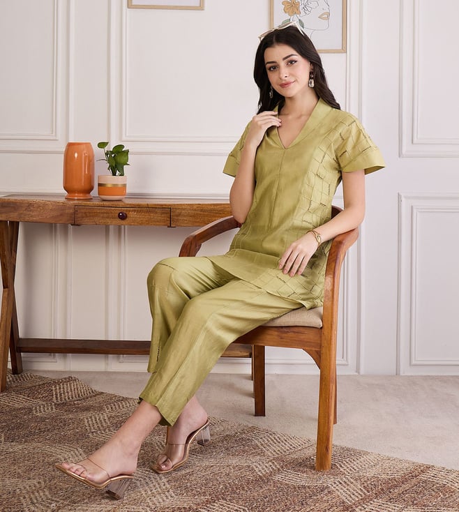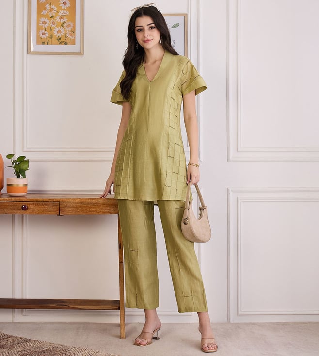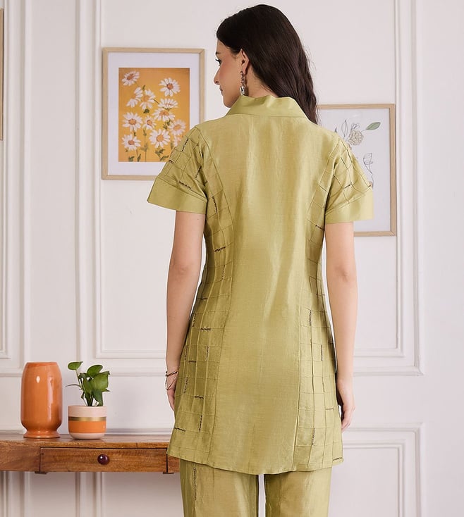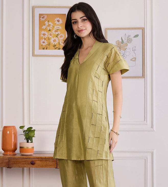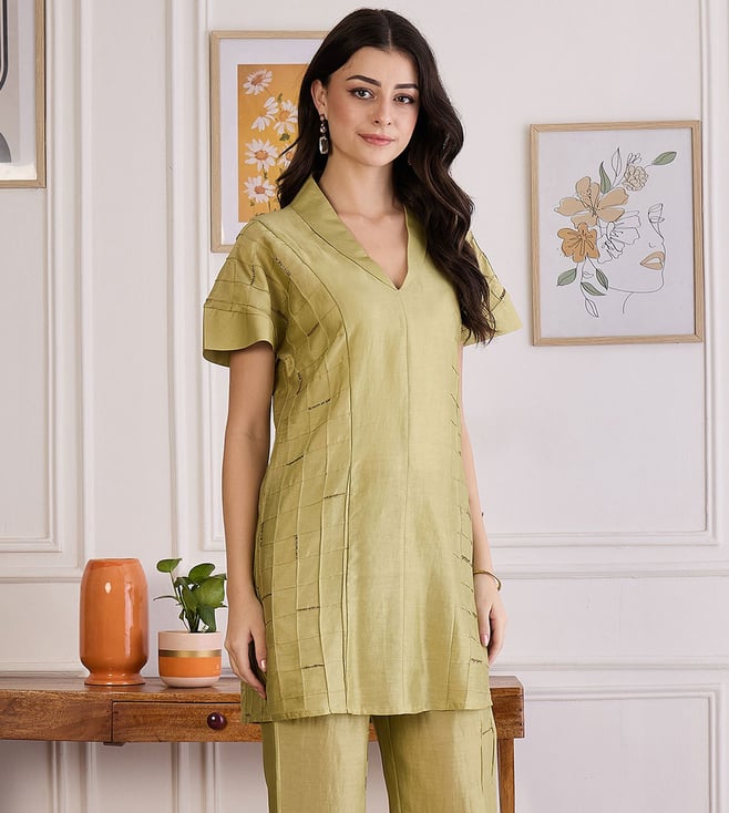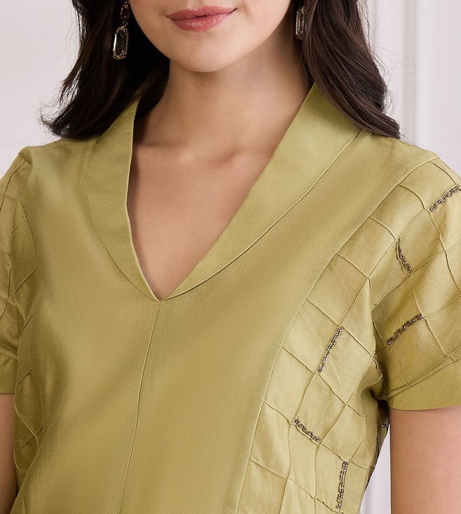 First Resort By Ramola Bachchan Lime Green Pintuck Top
