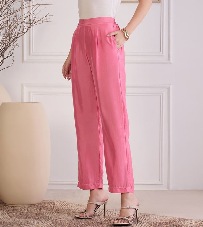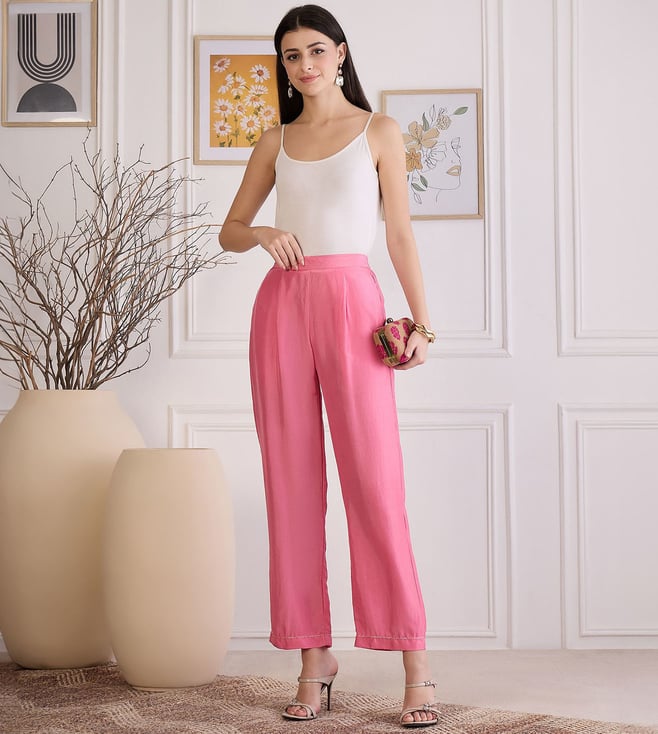 First Resort By Ramola Bachchan Pink Lustre Straight Pants