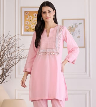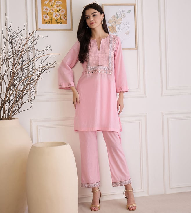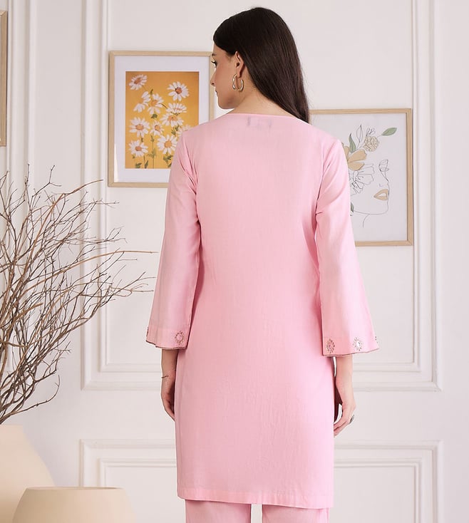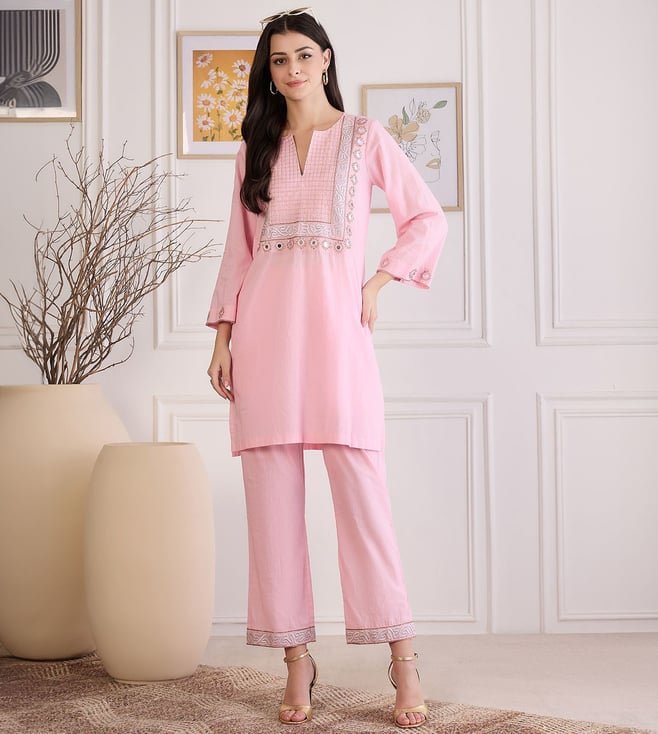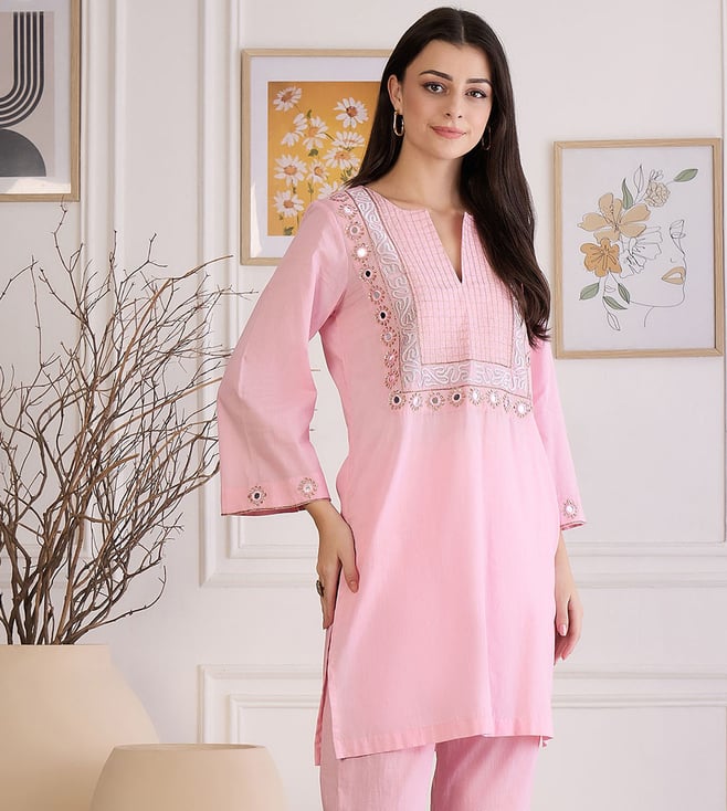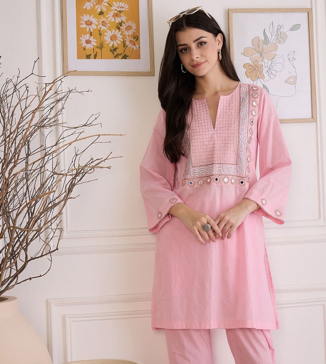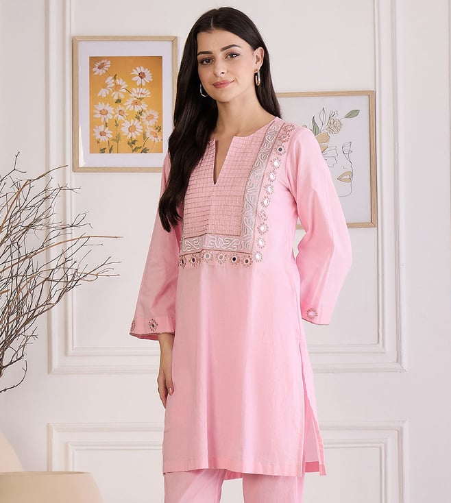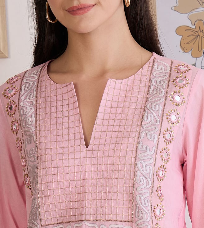 First Resort By Ramola Bachchan Pink Yoke Embroidered Kurta