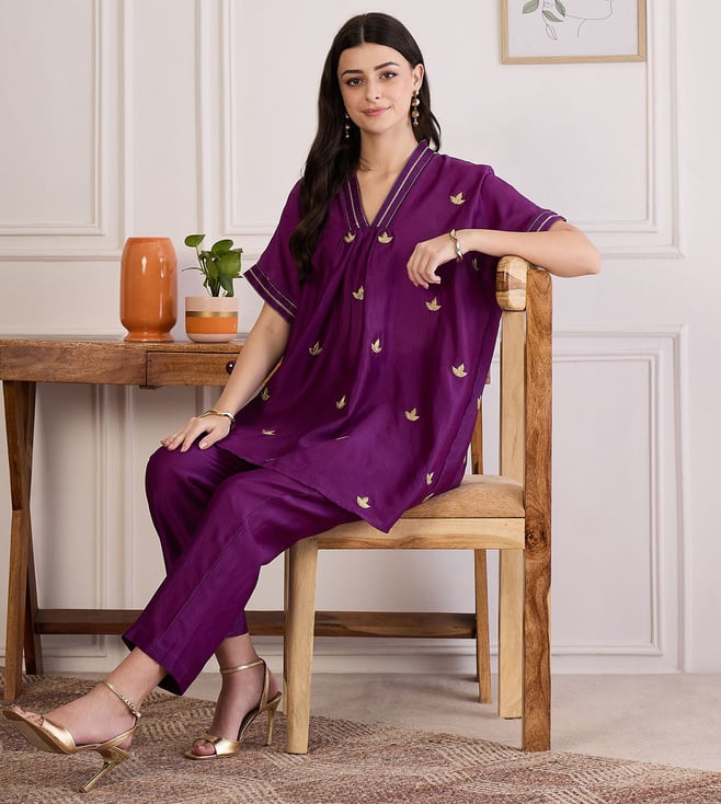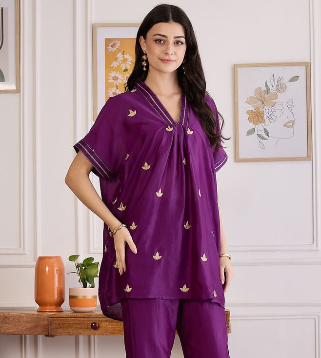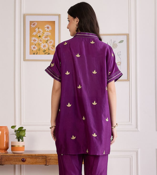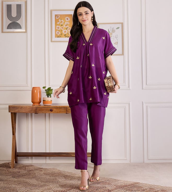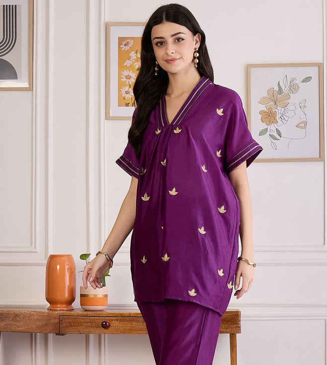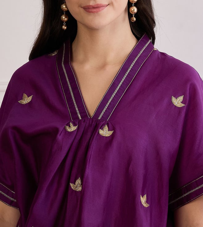 First Resort By Ramola Bachchan Purple Zari Hand Embroidered Top