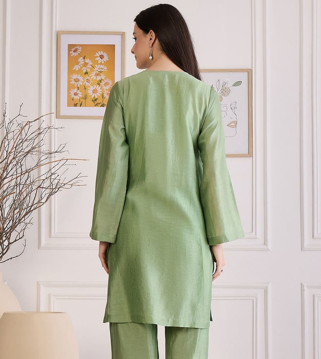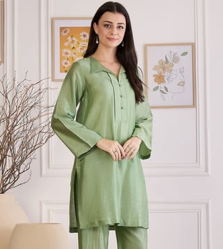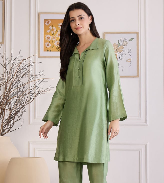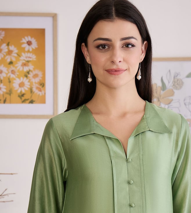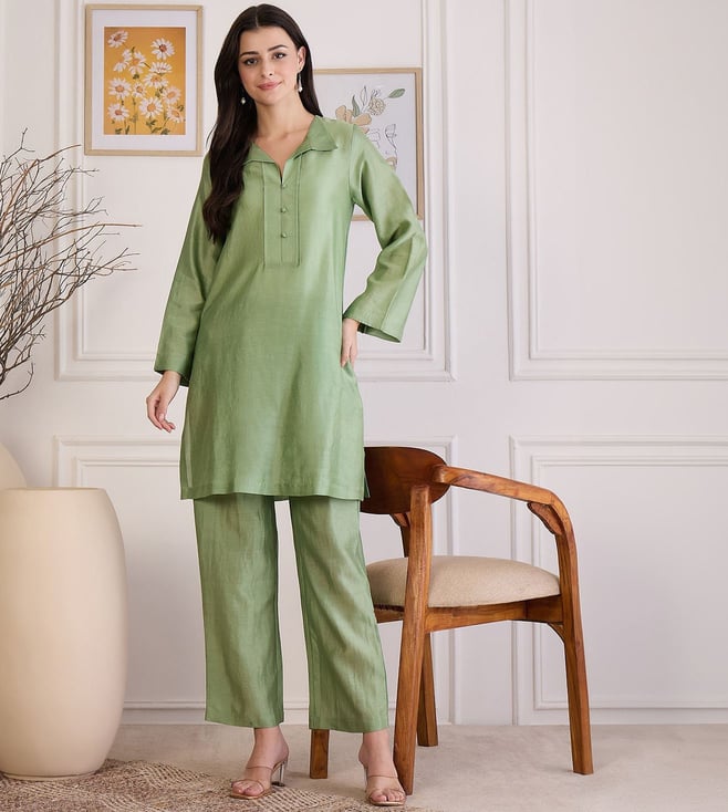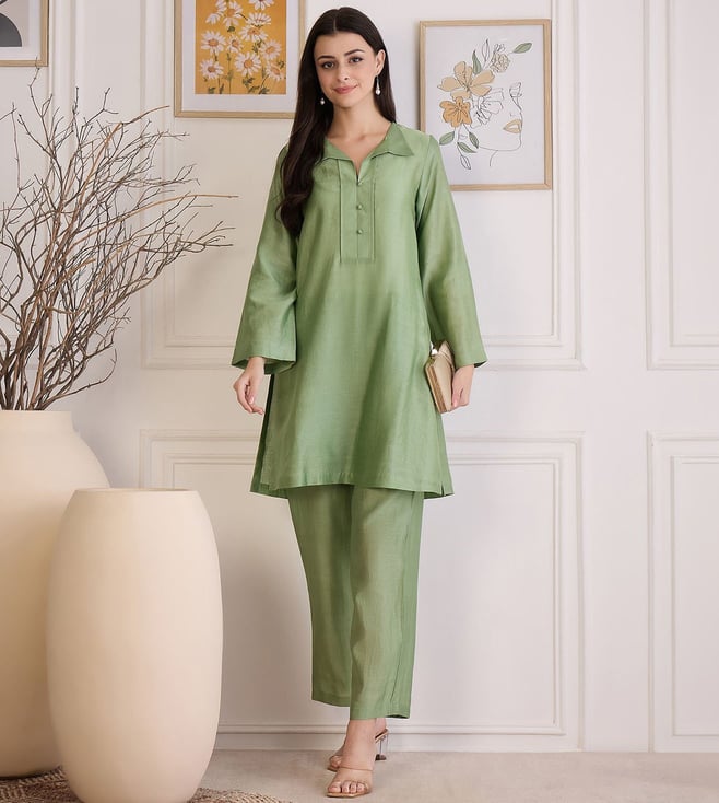 First Resort By Ramola Bachchan Sage Green Asymmetric Kurta