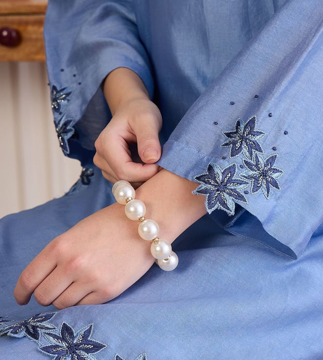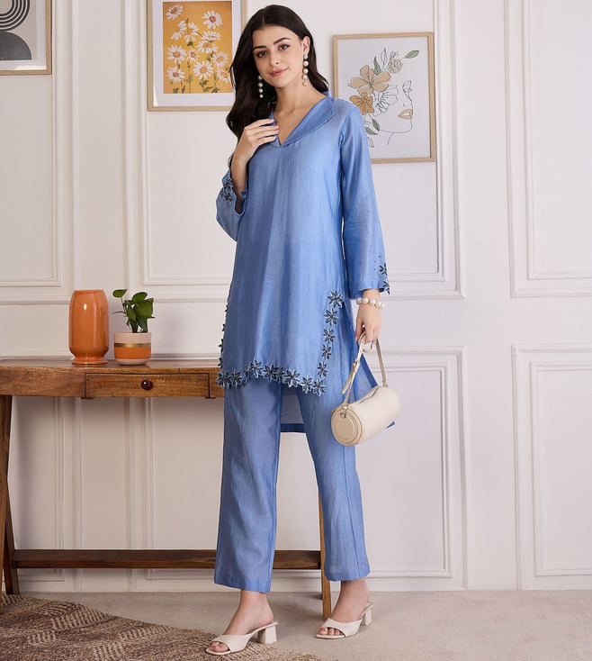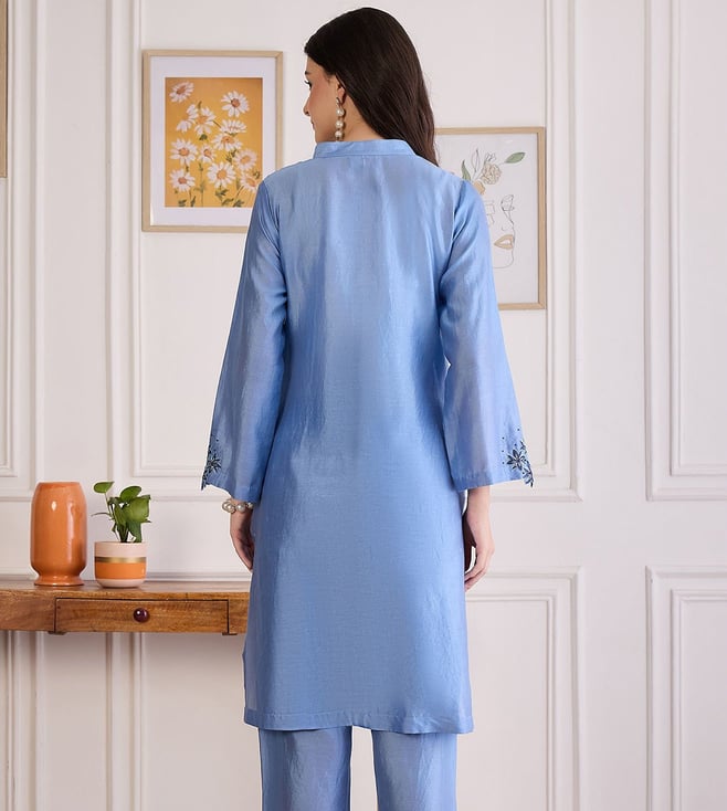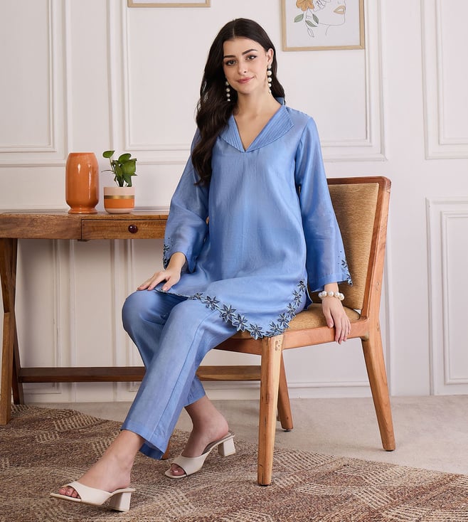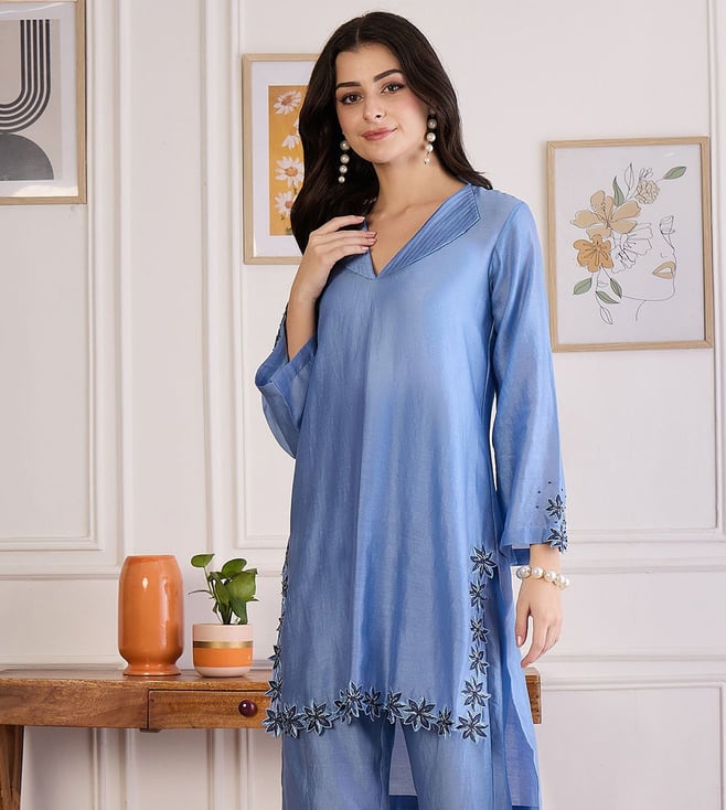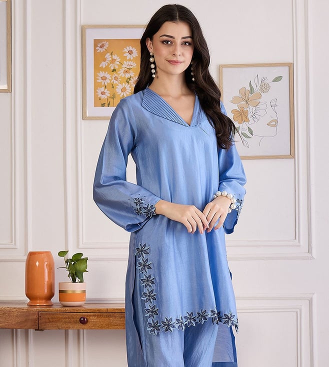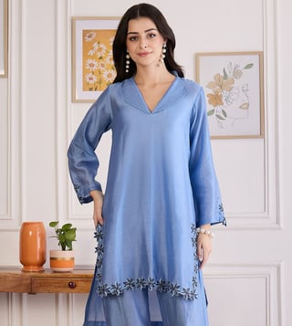 First Resort By Ramola Bachchan Sky Blue Floral Cutwork Kurta