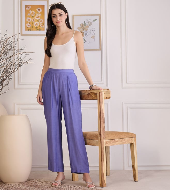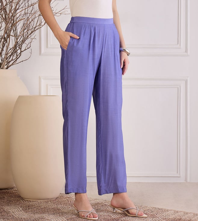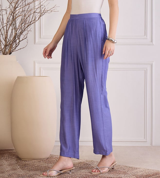 First Resort By Ramola Bachchan Slate Blue Gentle Straight Pants
