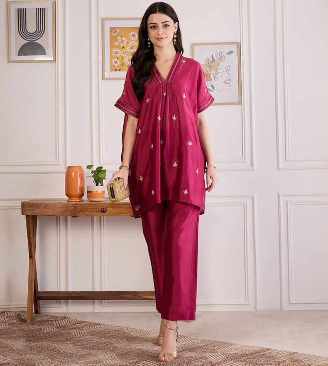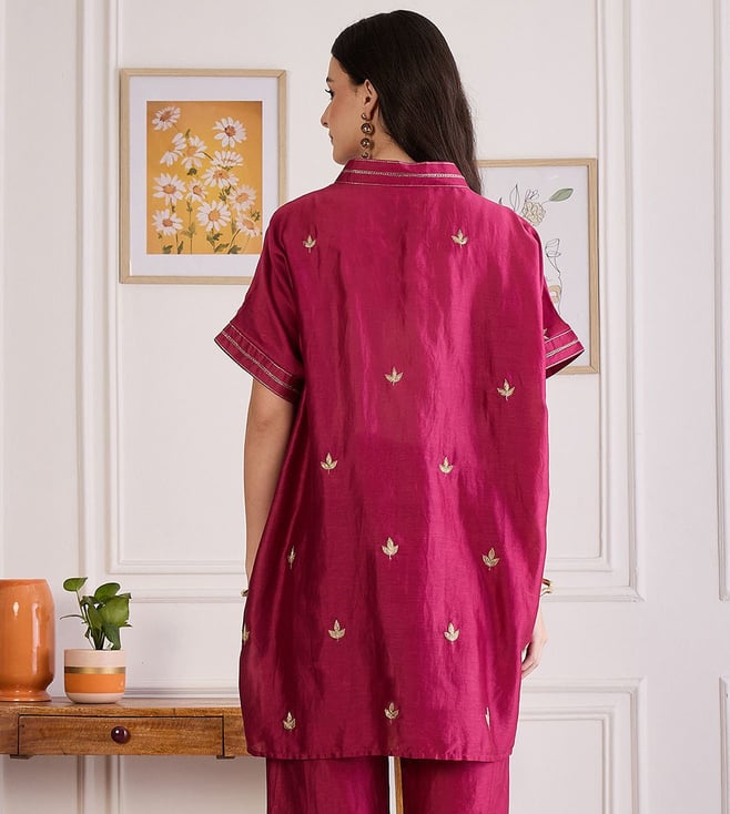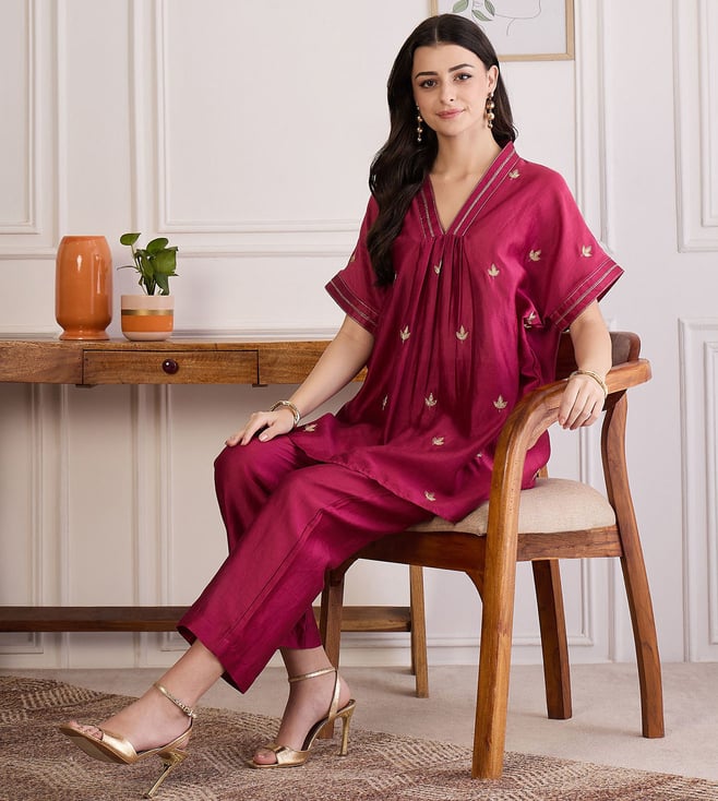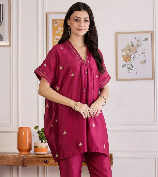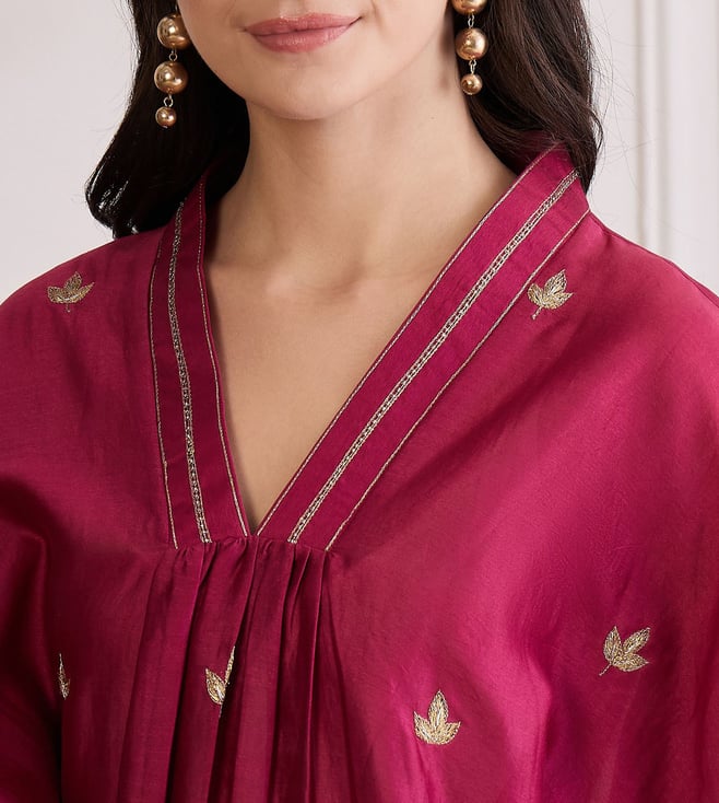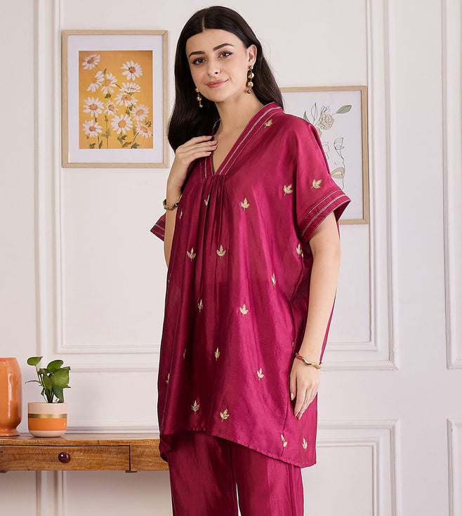 First Resort By Ramola Bachchan Wine Zari Hand Embroidered Top