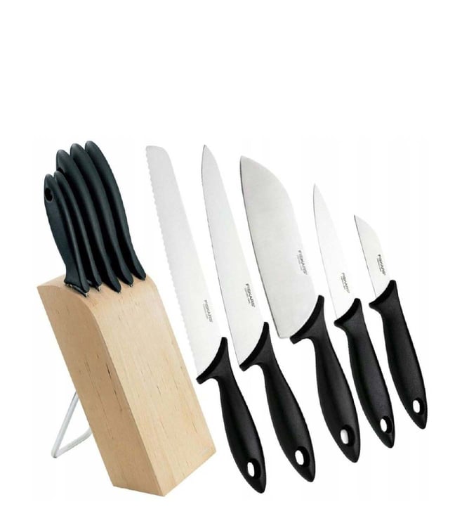 5-Piece Black & Silver Functional Form Knife Set With Knife Block