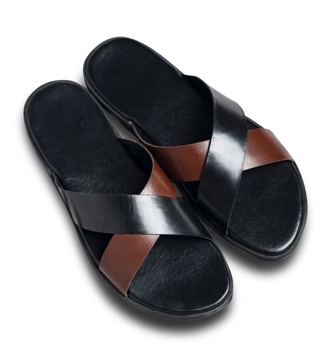 Black And Brown Sheep Leather Pelle Antico Slippers