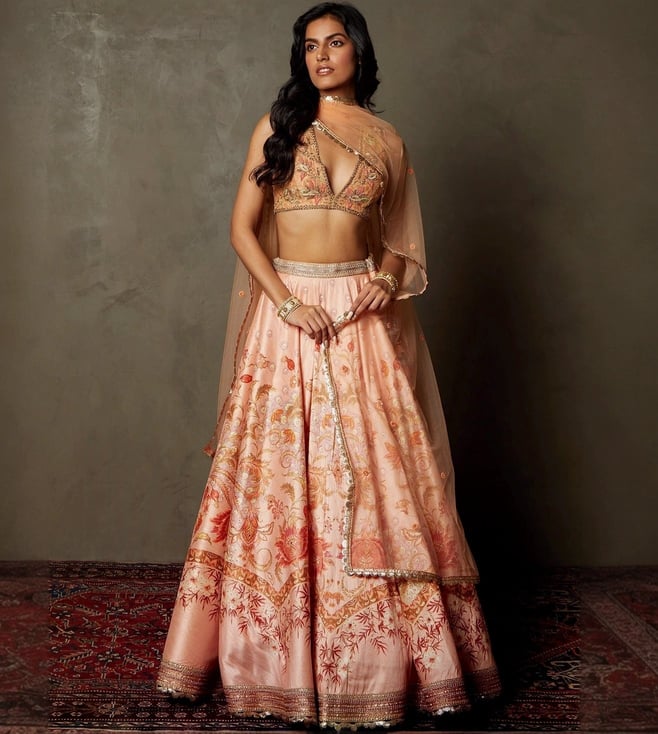 Peach Kumar Jardin Floral Embroidered Lehenga with Blouse and Dupatta