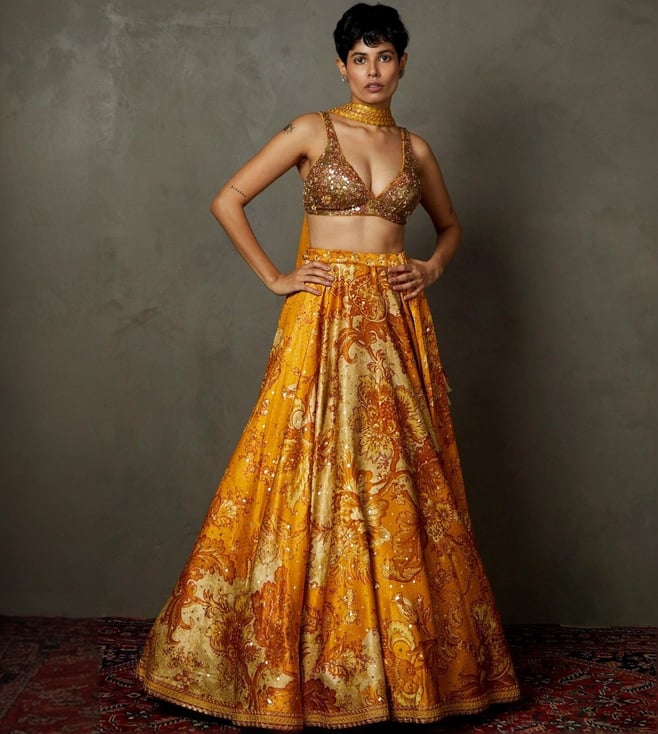 Yellow & Ochre Kumar Kylie Floral Embroidered Lehenga with Blouse and Dupatta
