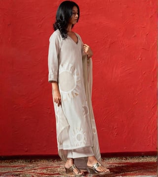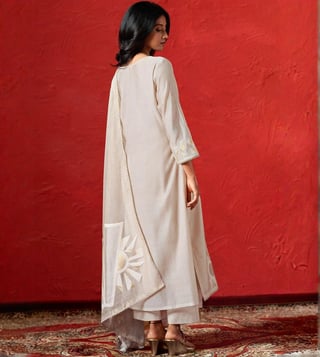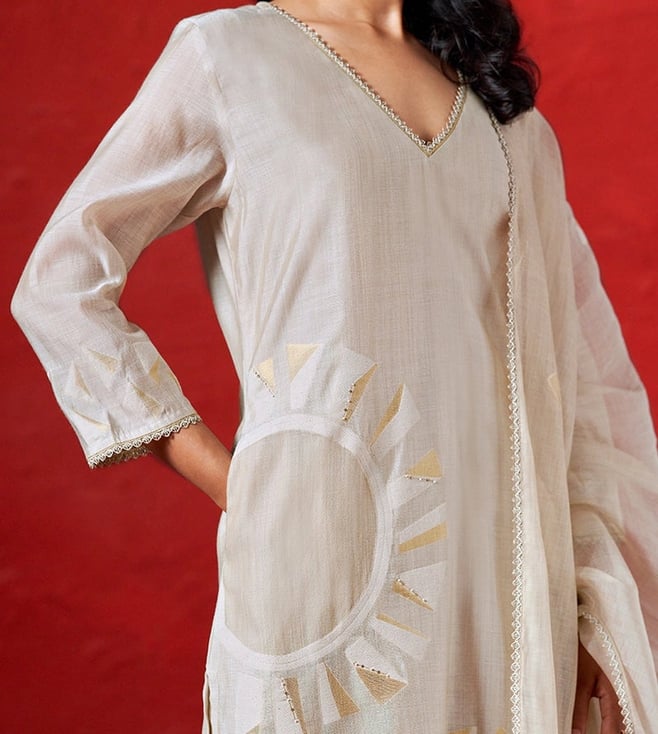 Ganga FashionsFog Beige Woven Kurta with Salwar Dupatta