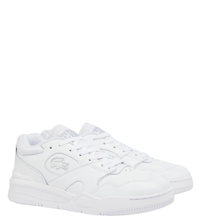 Men's White Powercourt Logo Tongue Leather Trainer Sneakers