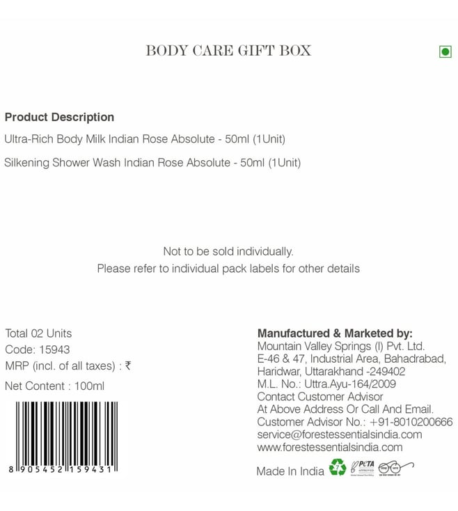 Encased in this beautiful gift box are the travel size body care essentials by Forest Essentials, scented with pure Rose essential oil and extracts of Desi Gulaab (Indian Rose), sourced from the ancient city of Kannauj for a luxurious bath & body care ritual with a sensuous scent that lingers on. While the hydrating Indian Rose Body Milk by Forest Essentials, infused with burnt Cane Sugar, Beeswax and Apricot Oil, seals in the moisture for a supple and plump finish, the sulphate free Forest Essentials Silkening Shower Wash Indian Rose Absolute leaves the skin clean, hydrated and glistening.