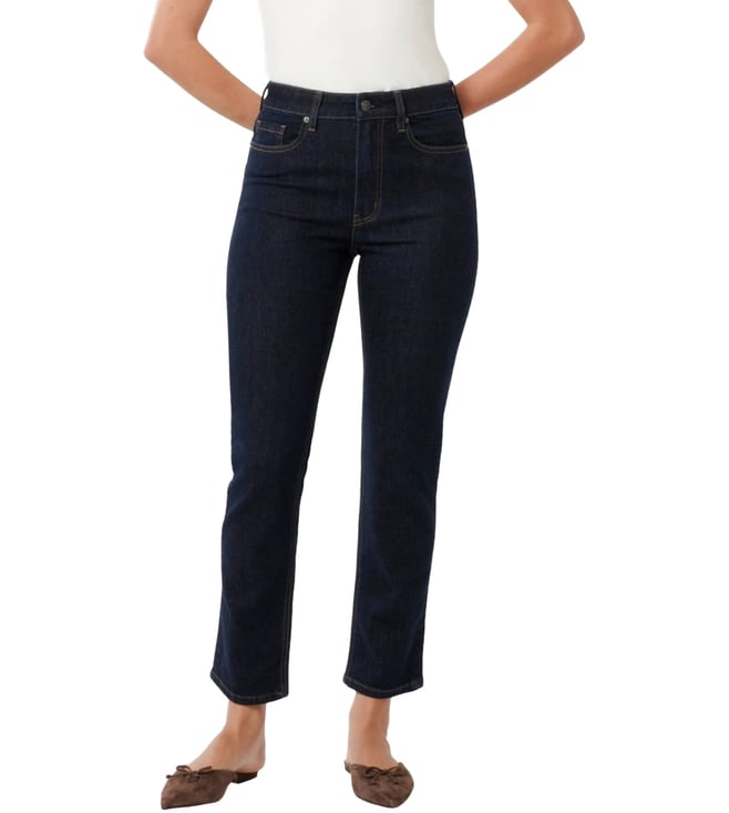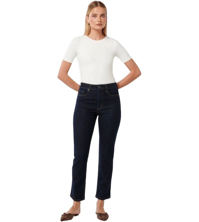 Add zest and zing to your look by wearing this pair of dark rinse wash regular fit jeans from Forever New. Tailored to sartorial perfection from premium quality fabric, it assures a soft and soothing touch against the skin.