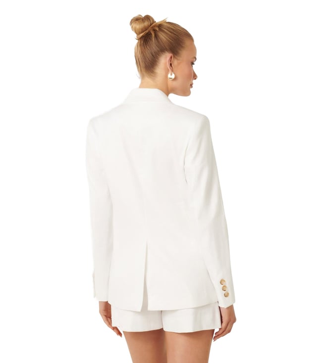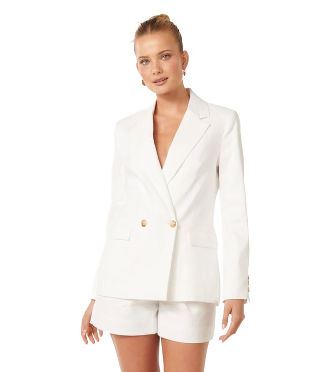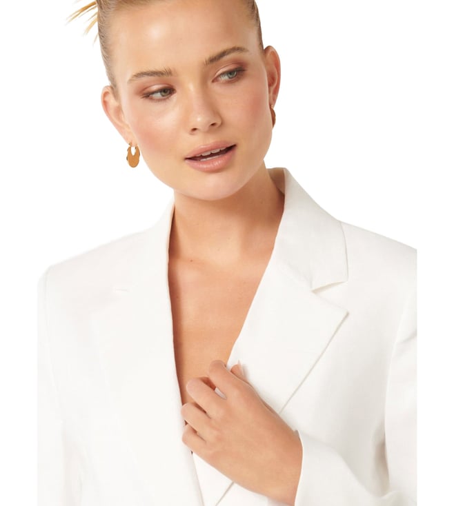 Adorn the finest fashion of the day with this stellar white blazer from the latest collection of Forever New. Beautifully tailored in premium stretch linen cotton for a alluring lustre and a superb soft touch complemented by cosy comfort and enduring strength, it's chic color-block pattern and trendy silhouette make it a great choice for a range of combinations. Put it over denims for a diva look.