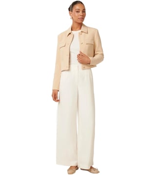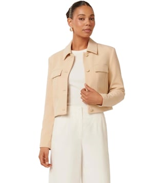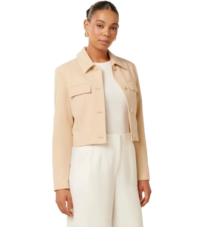 Inject high-street fashion to your wardrobe with this pebble peach jacket from Forever New. Tailored to sartorial perfection from premium quality fabric, it assures a soft and soothing touch against the skin. The shirt collar adds to its appeal. Exuding full sleeves, it is sure to fetch you compliments from all.