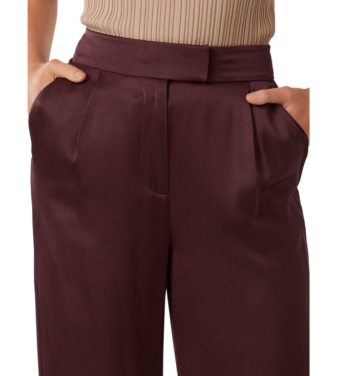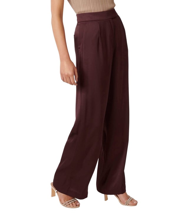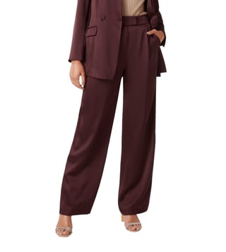 Be a picture of confidence with this sharp pair of maroon pleated pants from the latest collection of Forever New. Well crafted in premium polyester viscose for superb softness and unmatched drape complemented by fine lustre and excellent comfort, these are tailored in a stylishly designed regular fit with a high-rise silhouette for fine adaptation. Pair them with a constrast shirt for a stunning look.