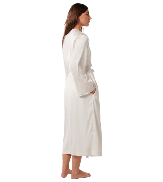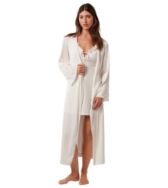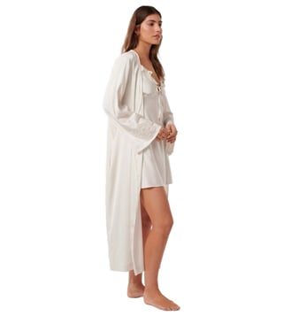 Inspire chic finesse in your line-up with this white stardust relaxed fit robe from Forever New. Tailored to sartorial perfection from premium quality fabric, it assures a soft and soothing touch against the skin. The V-neckline adds to its appeal. Exuding full sleeves, it is sure to fetch you compliments from all.