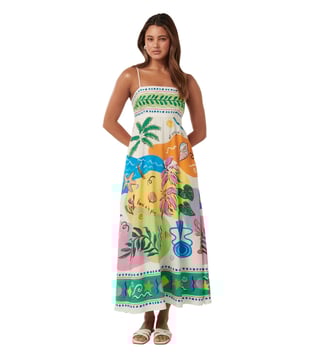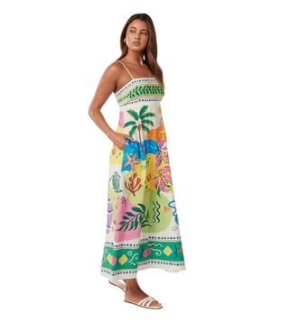 Flaunt your style with this multicolored midi dress from Forever New. Made from high quality fabric, this dress will keep you sweat free all day long. Featuring a square neck and printed pattern, this dress boasts of in vogue charisma. Team this dress with a pair of sandals to look effortlessly stylish.