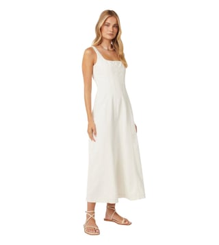 Add an extra dose of style to your casual wardrobe with this white midi dress from Forever New. Made from cotton fabric, this midi dress will keep you sweat free all day long. Featuring a square neck and solid pattern, this midi dress boasts of chic charm. Make heads turn by teaming this midi dress with a pair of stilettos.
