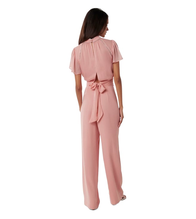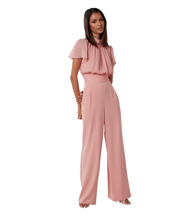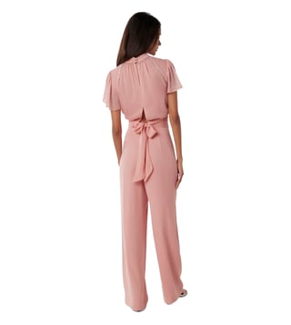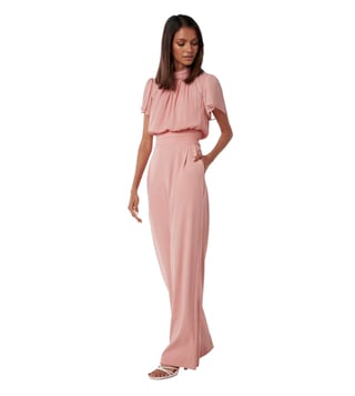 Turn heads any day you step out in this gorgeous pink jumpsuit from the latest collection of Forever New. Finely crafted in premium polyester for natural lustre and unmatched drape, it's chic color-block pattern adds a definitive fashion edge to it. Pair it with matching heels for a stunning look.