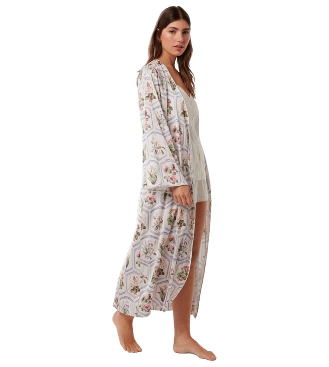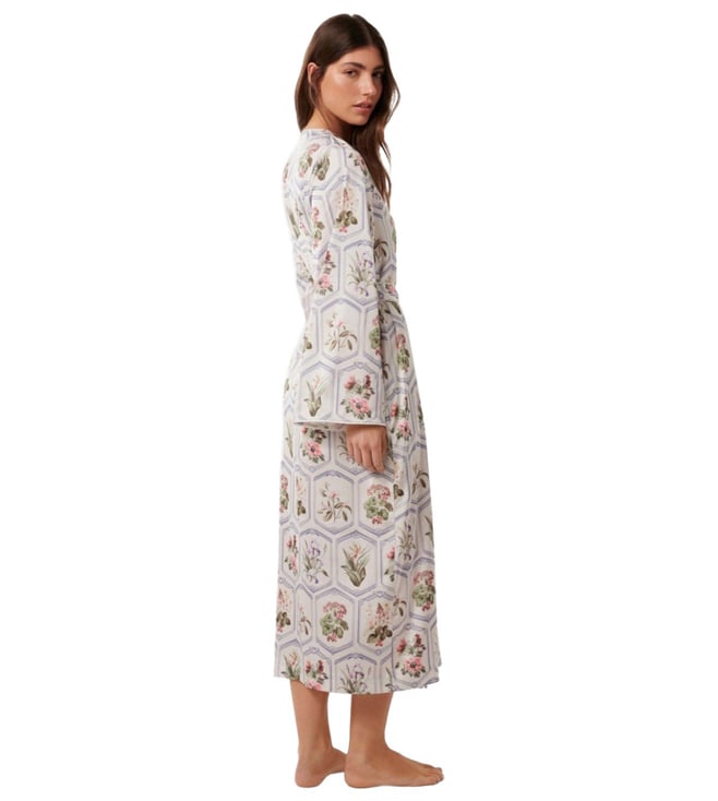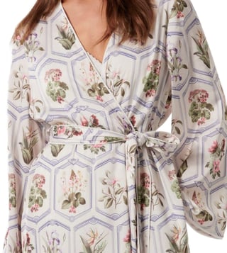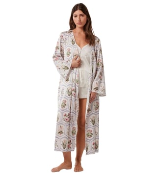 Look effortlessly stylish by wearing this botanical relaxed fit nighty with robe from Forever New. Tailored to sartorial perfection from premium quality fabric, it assures a soft and soothing touch against the skin. The V-neckline adds to its appeal. Exuding full sleeves, it is sure to fetch you compliments from all. The floral print makes it a bewitching choice.
