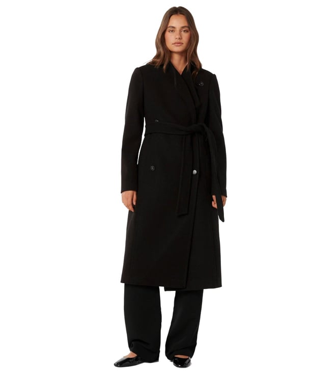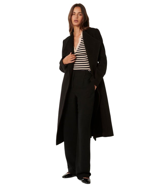 Elevate your casual wear with the Forever New Black Blended Slim Fit Coat. This stylish black coat for women combines comfort and elegance, perfect for everyday outings. Disclaimer: All other items in the image are only for display purposes and will not be a part of the delivery content. Product colour may slightly vary due to photographic lighting sources. Country of Origin - India.