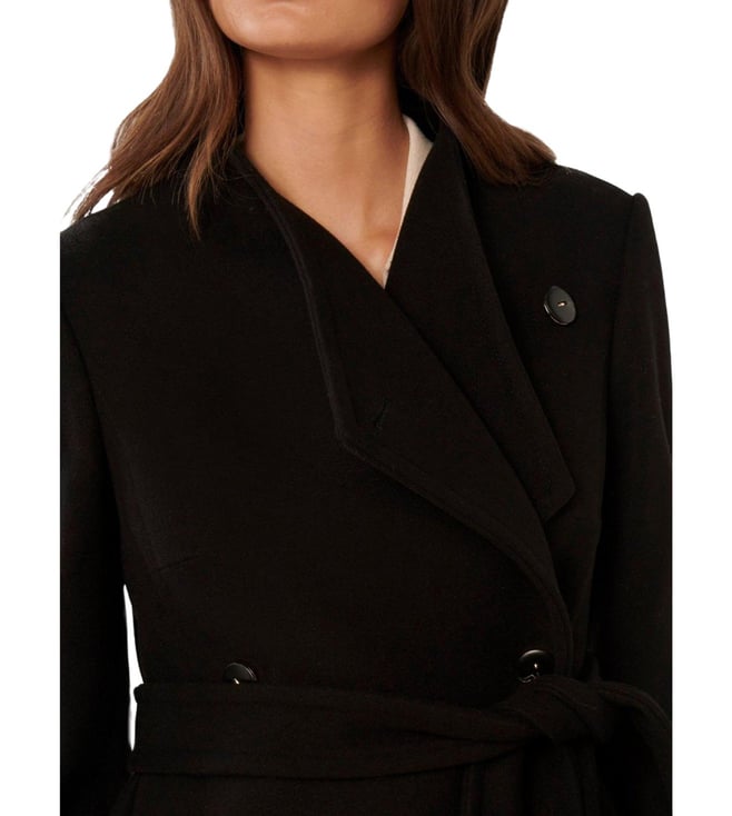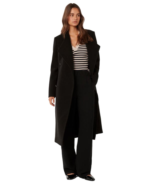 Elevate your casual wear with the Forever New Black Blended Slim Fit Coat. This stylish black coat for women combines comfort and elegance, perfect for everyday outings. Disclaimer: All other items in the image are only for display purposes and will not be a part of the delivery content. Product colour may slightly vary due to photographic lighting sources. Country of Origin - India.